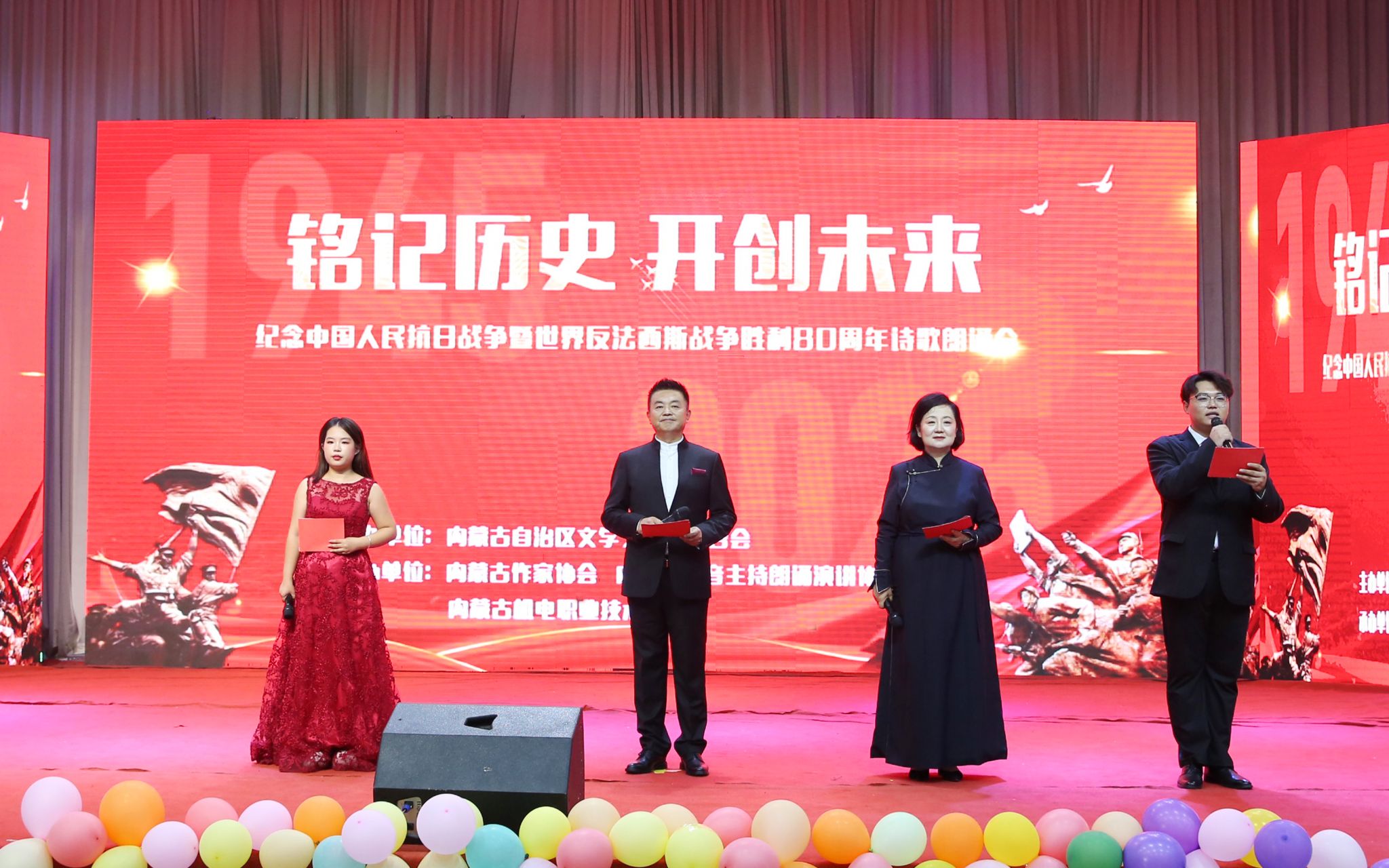 9月1日下午,“铭记历史 开创未来——纪念中国人民抗日战争暨世界反法西斯战争胜利80周年诗歌朗诵会”在我院文体中心隆重举行。本次活动由内蒙古自治区文学艺术界联合会主办,内蒙古作家协会、内蒙古播音主持朗诵演讲协会与内蒙古机电职业技术学院承办。
