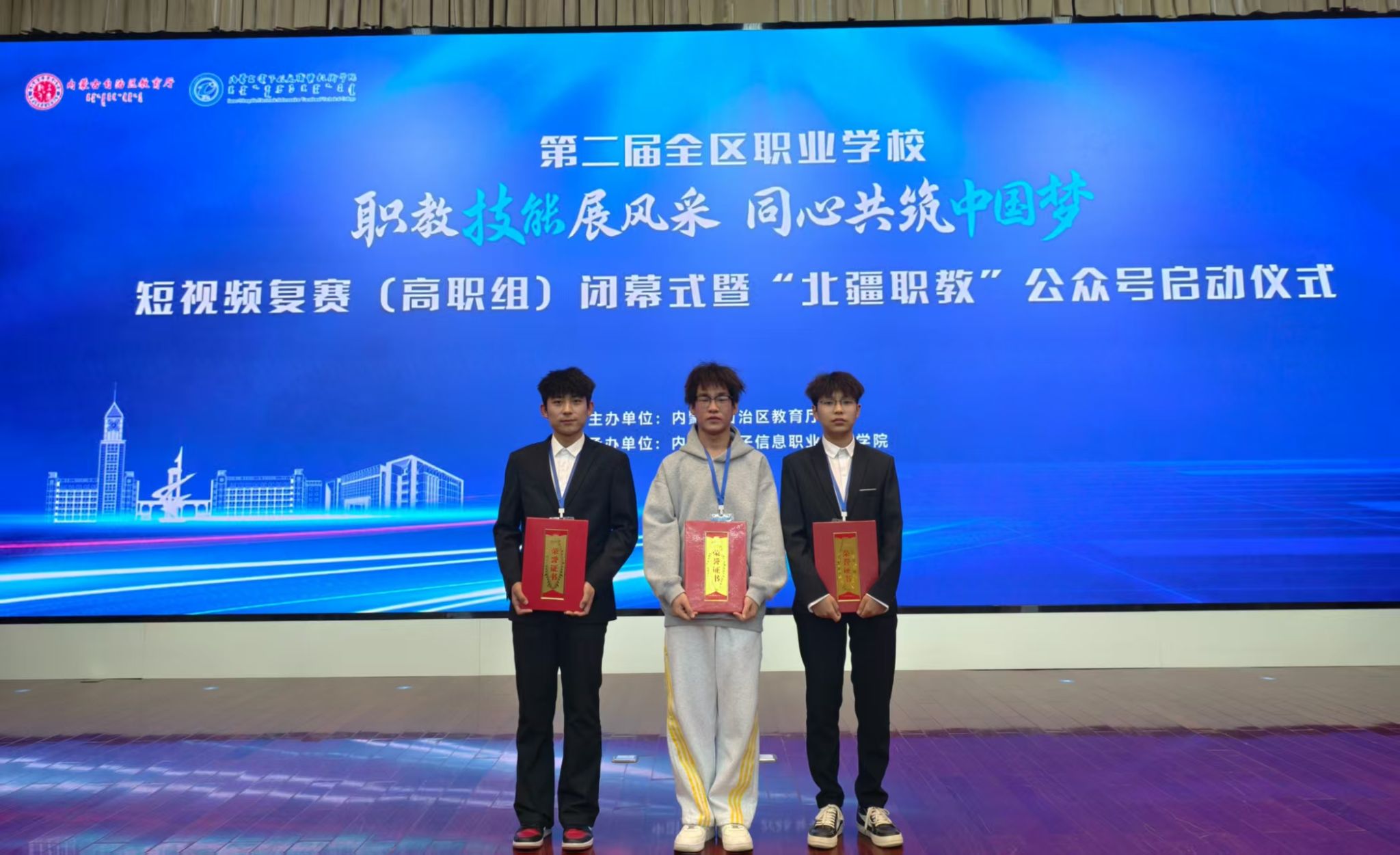 近日,第二届全区职业学校“职教技能展风采 同心共筑中国梦”短视频比赛圆满落幕。由我院教师张彬指导,学生毕宸浩、范泽天、钟智勇、吕忻泽完成的作品《技能青春“职”面挑战》荣获三等奖。