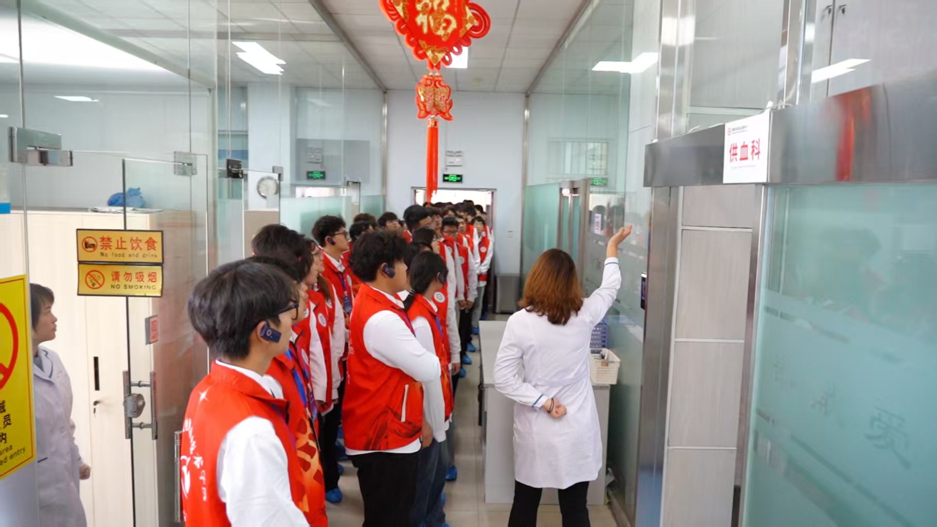 活动中,在讲解员的引导下,同学们沿着“血液采集、样本检验、制备储存”的全流程路线,先后参观了机采献血室、血液成分科、检验科等核心区域。透过干净明亮的玻璃观察窗,大家直观了解到献血者健康筛查的严格标准、血液分离制备的精密流程,让大家对血液安全有了更深刻的认识。当看到一袋袋承载着爱心的血液被妥善储存,即将为患者带去生命希望时,现场同学纷纷感慨“每一份血液背后,都是严谨的科学与温暖的善意”。