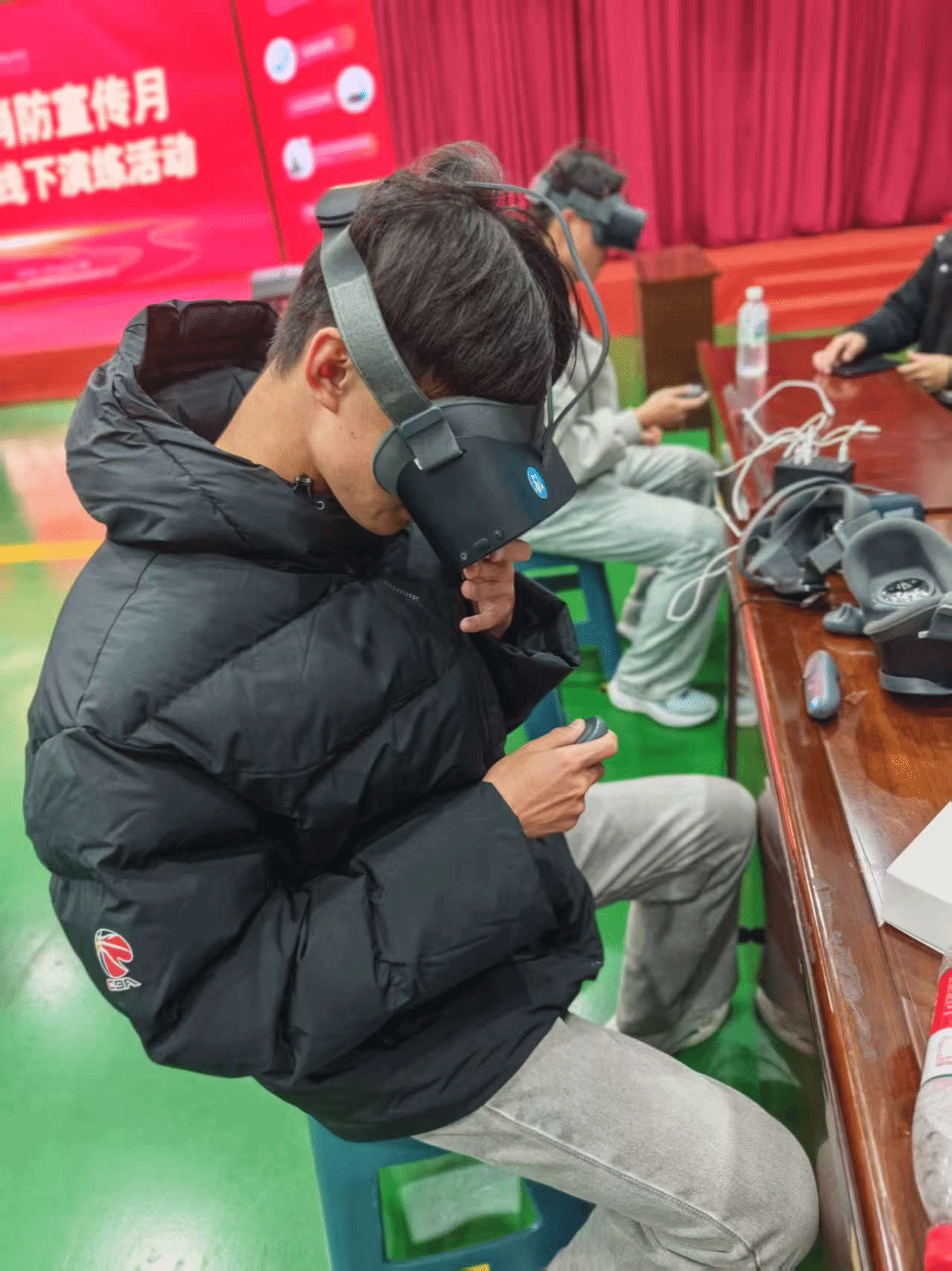 活动精心设计了体验与游戏两大板块,力求在实操与趣味中传递安全知识。在体验区,灭火实训教学让师生亲手操作灭火器材,掌握扑救初起火灾的正确方法;结绳训练环节,大家学习并实践了多种应急绳结的打法;VR安全体验与VR汽车安全实训则借助虚拟现实技术,模拟火场逃生、交通事故等险境,使参与者在高度仿真的场景中提升临场反应与决策能力;海姆立克急救术教学普及了气道异物梗阻的急救技巧,而醉酒行走体验则直观地展现了酒精对身体协调性的影响,警示酒后危害。