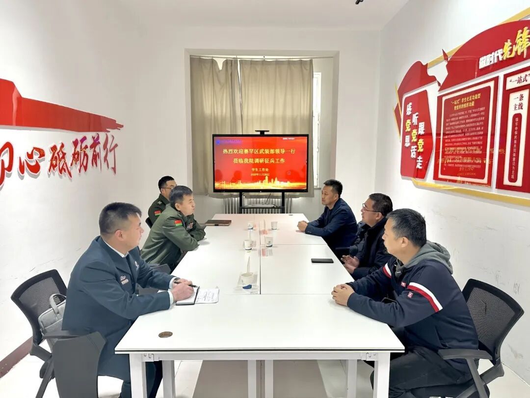 11月26日上午,赛罕区人民武装部部长佘翀一行三人到我院调研指导征兵工作。学院学生工作处(武装部)相关人员参加座谈交流。