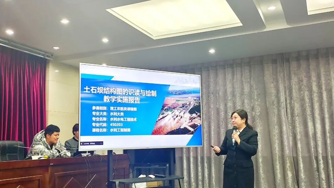 水利与土木建筑工程系教师斯庆高娃、朱敏将思政元素与专业教学深度融合,展示《土石坝结构图的识读与绘制》的课程思政教学成果。