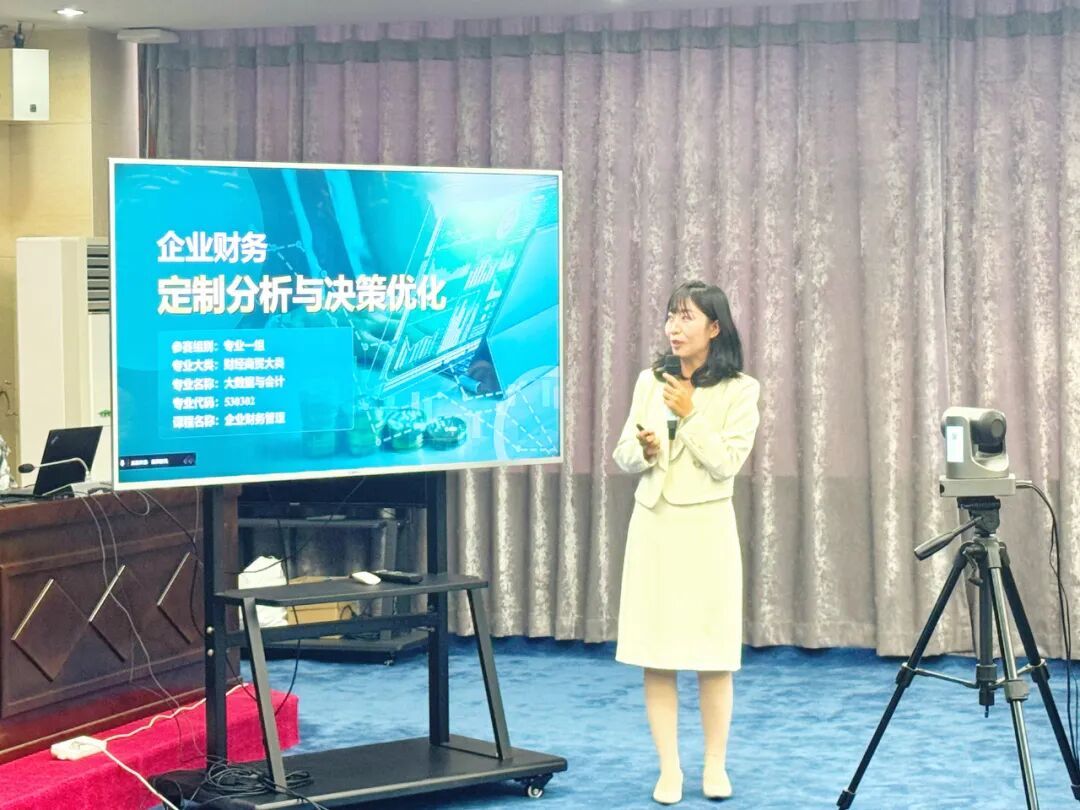 经济与管理工程系教师张岩瑾、李彤带来《企业财务定制分析与决策优化》展示,融合清晰的教学思路和先进的信息技术手段呈现AI赋能的教学设计。