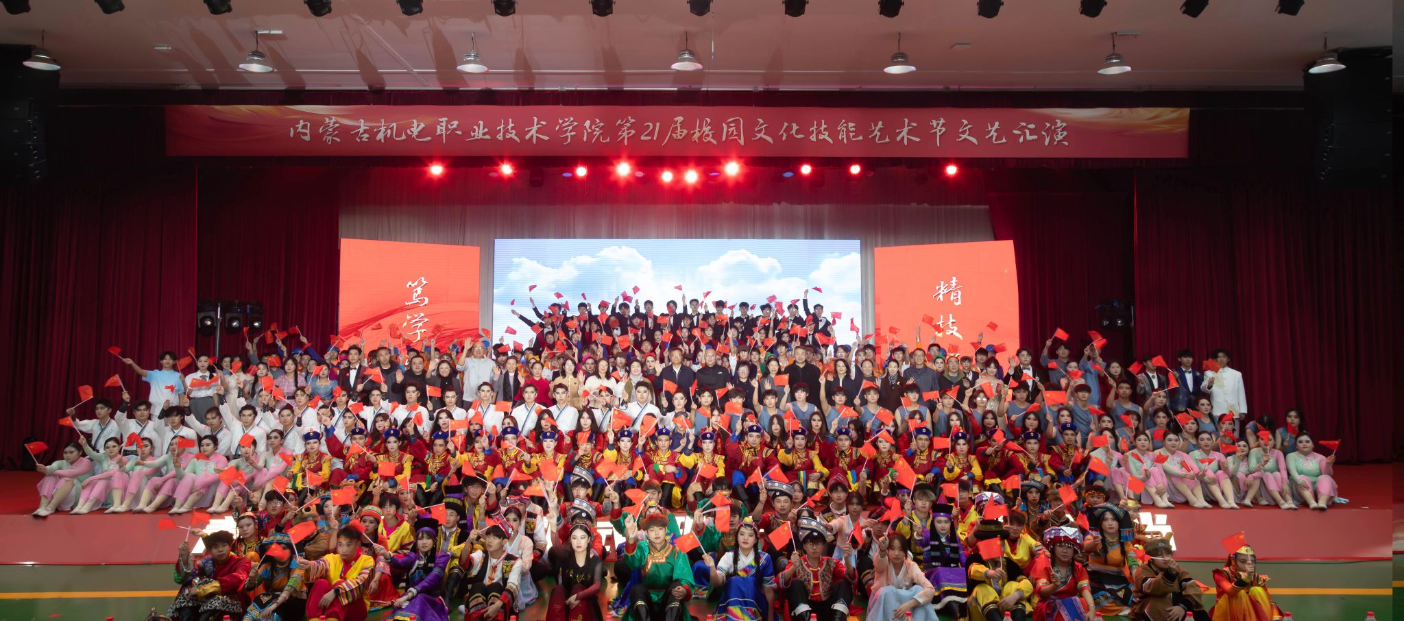 本次汇演以“青春为中国式现代化挺膺担当”为主题,分为“青春聚力颂北疆 薪火相传续新篇”“石榴花开心向党 红色基因润初心”“青春筑梦新时代 挺膺担当向未来”三个篇章,通过歌舞、情景剧、职业舞蹈等多元形式,生动展现内机电学子昂扬向上的精神风貌与时代担当。