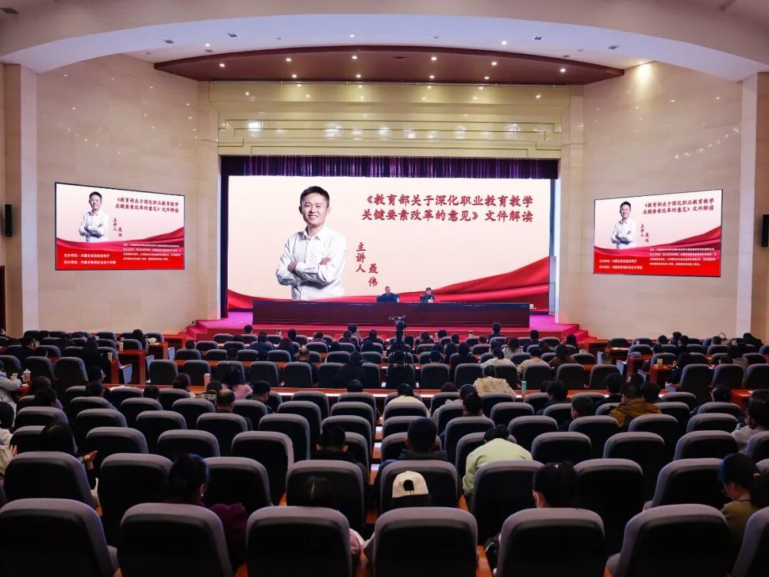 3月13日,自治区教育厅主办的《教育部关于深化职业教育教学关键要素改革的意见》(以下简称《意见》)解读专题培训会顺利召开,主会场设在我院学术交流中心一楼报告厅。会议由学院副院长白图娅主持,学院领导班子成员、全体教师参会。