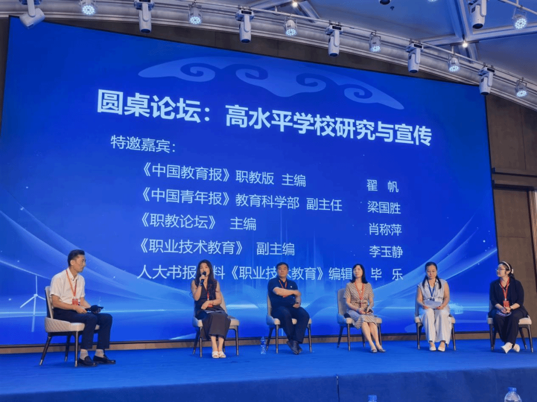 本次学术年会设置圆桌论坛,特邀《中国教育报》职教版主编翟帆、《中国青年报》教育科学部副主任梁国胜、《职教论坛》主编肖称萍、《职业技术教育》副主编李玉静、人大书报资料《职业技术教育》编辑毕乐围绕“高水平职业学校研究与宣传”主题展开对话和交流。
