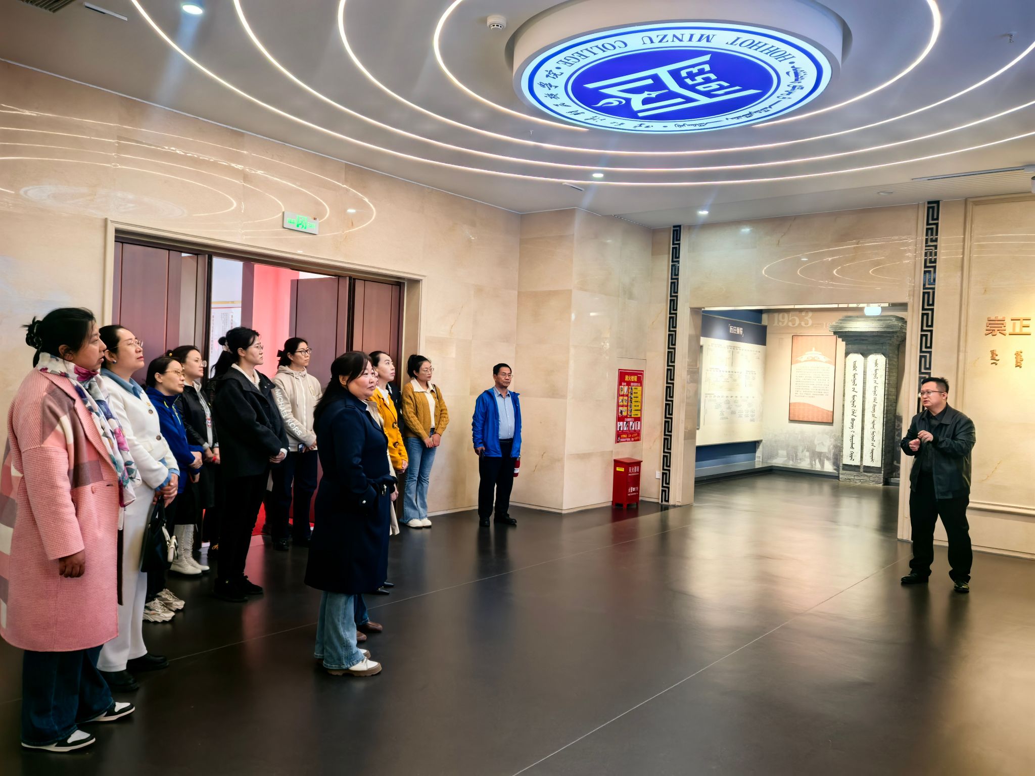 9月30日下午,马克思主义教研部直属党支部全体教师来到呼和浩特民族学院进行“铸牢民族团结心,共绘民族同心圆”民族团结进步活动月主题党日活动。在呼和浩特民族学院马克思主义学院院长赵梅兰、党政办秘书科科长刘海峰老师的陪同下,全体教师参观了呼和浩特民族学院校史馆、铸牢中华民族共同体意识教育馆、全国民族团结进步示范校民族团结进步文化长廊以及“时代楷模”长廊。