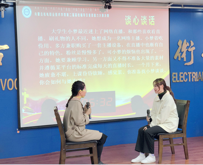 本次大赛共分为“基础知识测试”、“案例分析”、“谈心谈话”及“理论宣讲”四个环节。比赛现场,各位参赛老师胸有成竹、沉着冷静。充分展示了我院学生工作队伍良好的职业素养和风采。