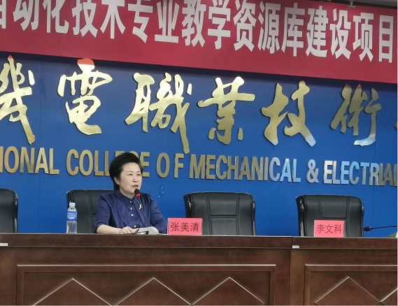 首先,内蒙古机电职业技术学院教学院长郝俊代表项目组致辞,他指出经过三年建设,电力系统自动化技术专业教学资源库在行业以及全国职业院校中都获得了很好的声誉和影响力。在疫情防控的特殊时期,面向全国院校开放在线学习平台和课程资源,提供学习数据存储与分析、专业师资答疑助学,全力保障院校教学与学生学习需求,助力疫情防控。郝俊副院长针对项目建设数量、质量、应用推广及经费方面存在的问题进行总结和梳理,以问题为导向,把握工作重点,明确工作要求,将验收安排工作任务做深做实,以优异的成绩通过验收!