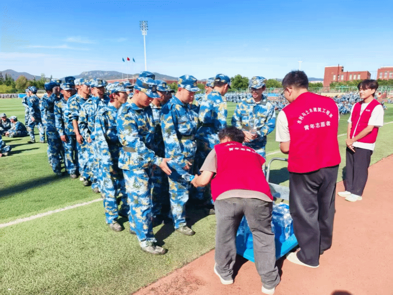 训练场边,学生志愿者穿梭不息,为新生送去清凉与关怀——一瓶瓶冰凉的矿泉水,一句句暖心的鼓励。这份体贴不仅缓解了身体的疲惫,更传递着团结与友爱。感动化作行动,训练间隙,许多新生主动回收空瓶,以环保回馈温暖。