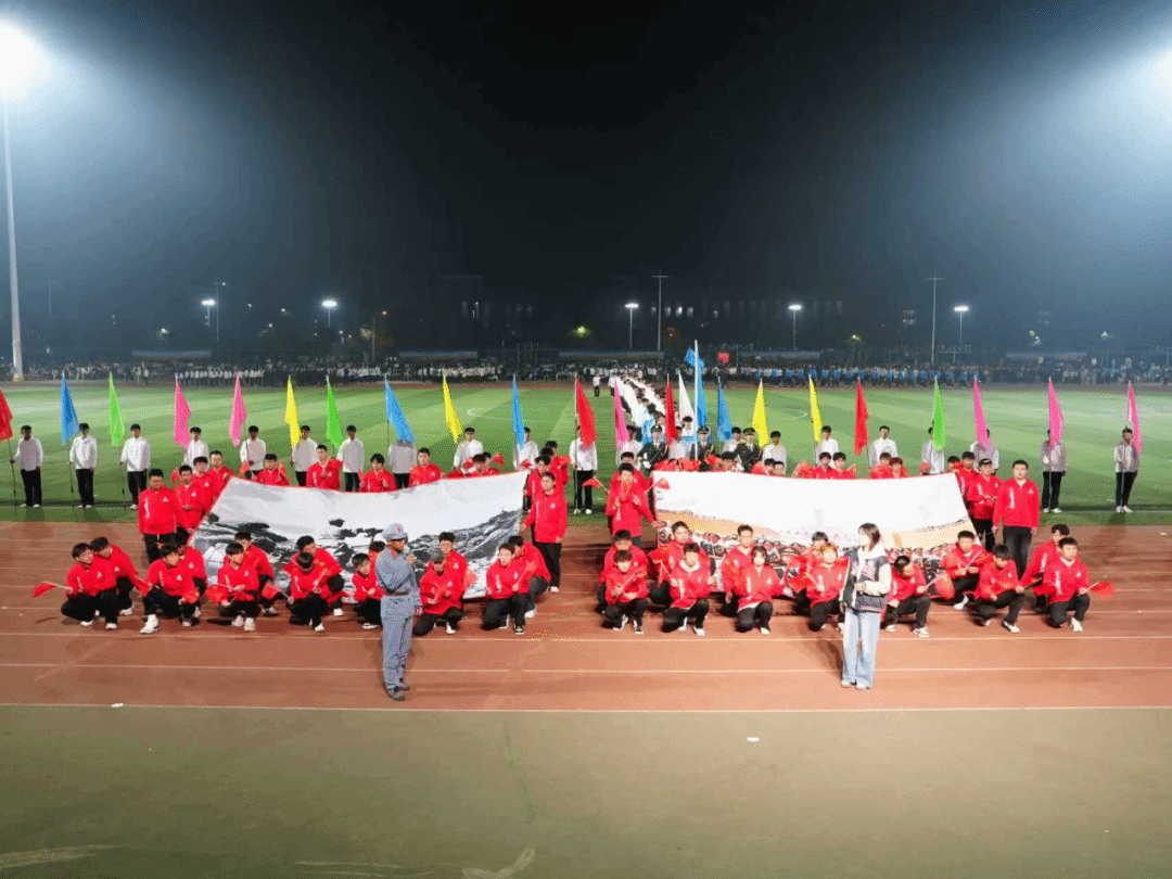 在第52届校田径运动会开幕式上,组织学生党员和入党积极分子组成方阵,以“历史隔空对话”的创意形式,生动展现1945年至2025年间祖国的伟大变迁。这场跨越时空的青春告白,彰显了新时代青年“请党放心,强国有我”的坚定决心与团结奋进风貌。