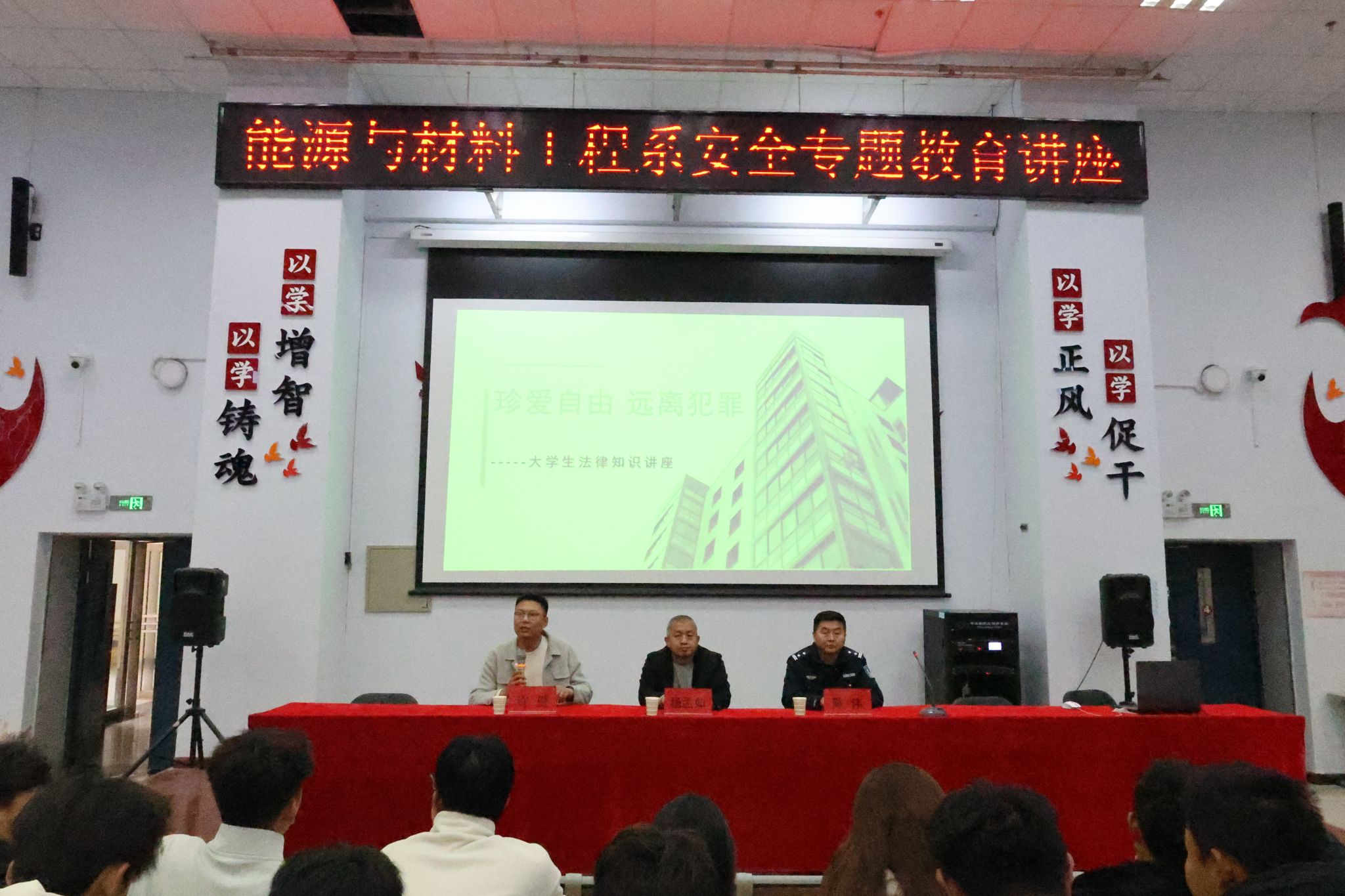 11月6日,能源与材料工程系在行知楼D109举办了大学生安全教育专题讲座,特邀呼和浩特第三监狱一级警长陈伟主讲,300余名学生参加。
