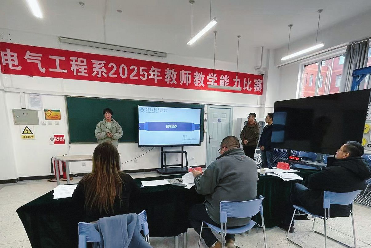 11月10日,电气工程系举办2025年教师教学能力比赛,特邀行业专家及教学能力比赛经验丰富的青年教学专家担任评委。
