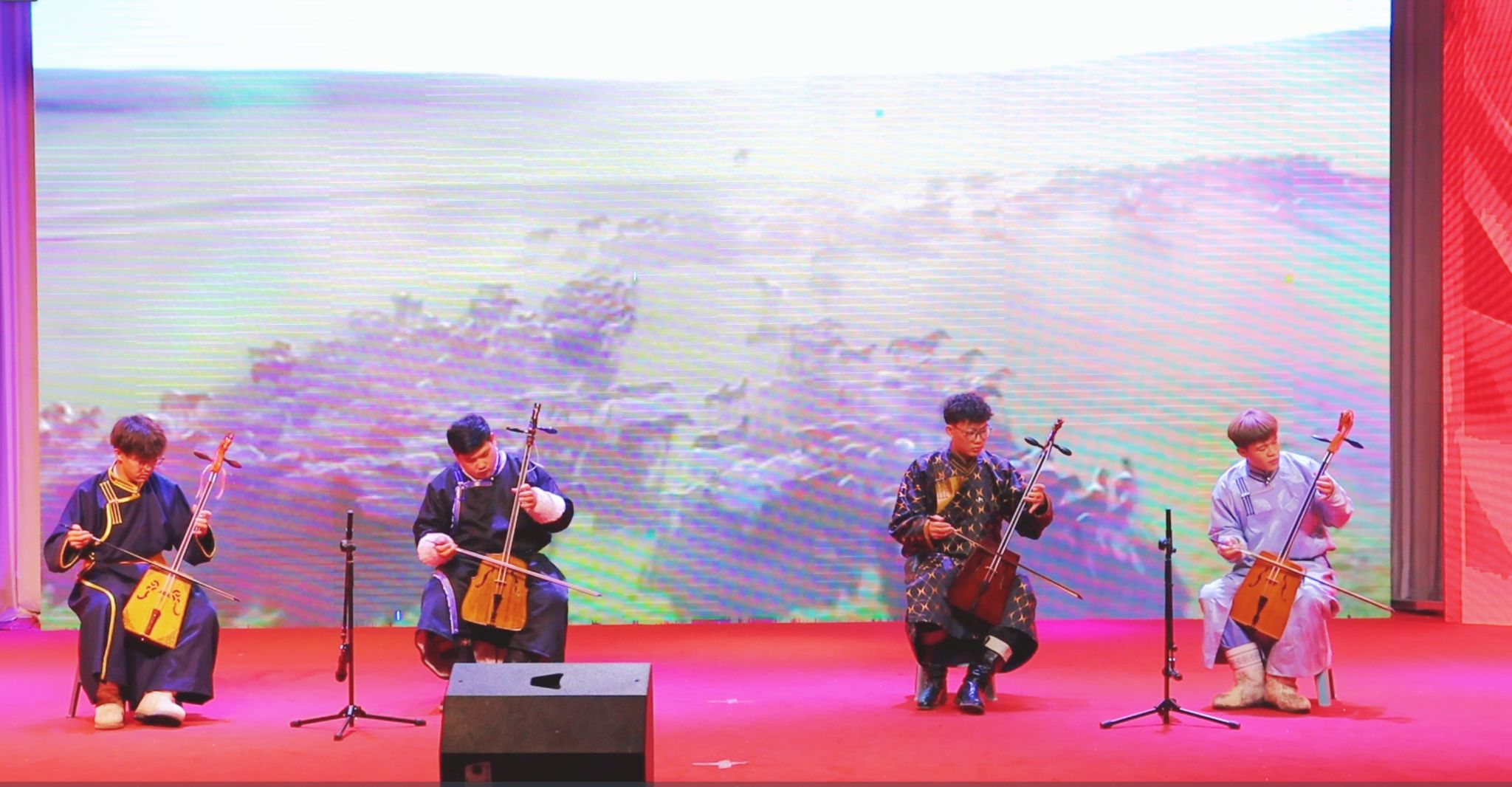 歌曲《天下》《站在草原望北京》深情抒发了广大学子对祖国的热爱与忠诚。器乐演奏《万马奔腾》气势磅礴、雄浑激昂,生动展现出草原儿女奋勇拼搏的豪迈气概。歌曲《为内蒙古喝彩》以嘹亮高亢的歌声,传递出对中华民族共同体的深切认同。舞蹈《心中的红》以真挚饱满的情感,将“信仰之红”的精神力量演绎得淋漓尽致。歌曲《改变自己》则凭借励志的歌词与动人的旋律,激励青年学子勇做奋进者、争当追梦人。