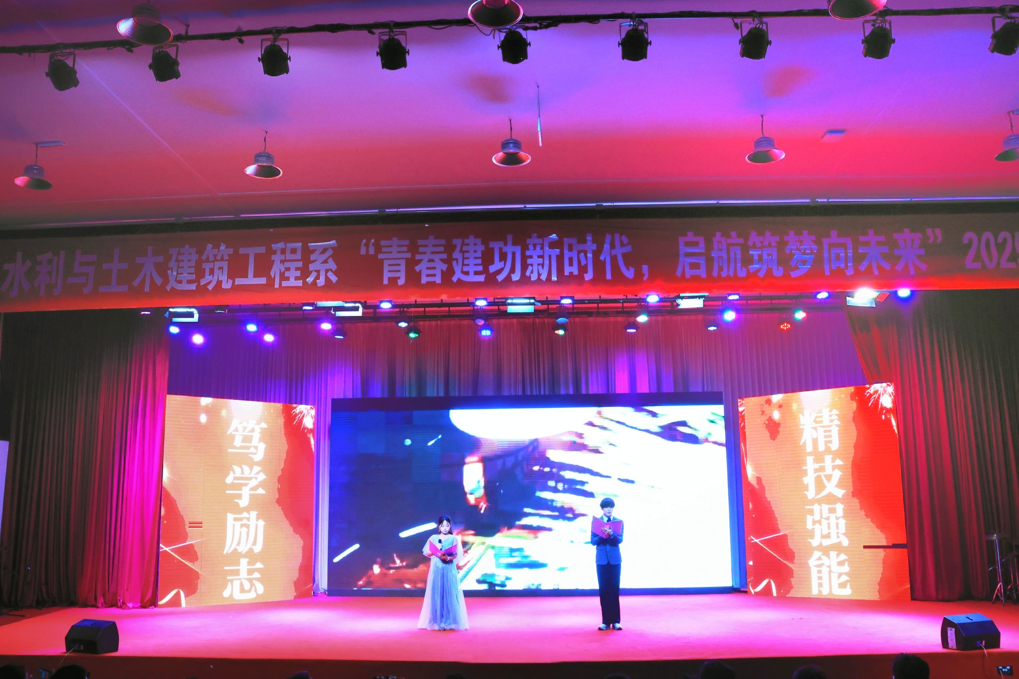 12月18日晚,水利与土木建筑工程系“青春建功新时代 启航筑梦向未来”迎新晚会在学院文体中心隆重举行。全系师生齐聚一堂,在欢声笑语中共赴一场青春洋溢、精彩纷呈的艺术盛宴。