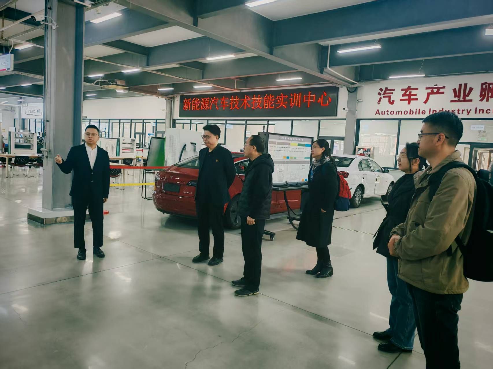 调研期间,布仁一行实地参观了新能源汽车技术技能实训中心、自动驾驶云平台等实习实训基地,深入了解实训基地的建设理念、设备配置及产教融合实践情况。座谈会上,长春汽车职业技术大学汽车工程学院院长李东兵分享了职业本科专业申报及“双高计划”专业群建设的经验。双方还围绕专业建设、课程体系优化、校企合作机制等议题进行了深入交流。