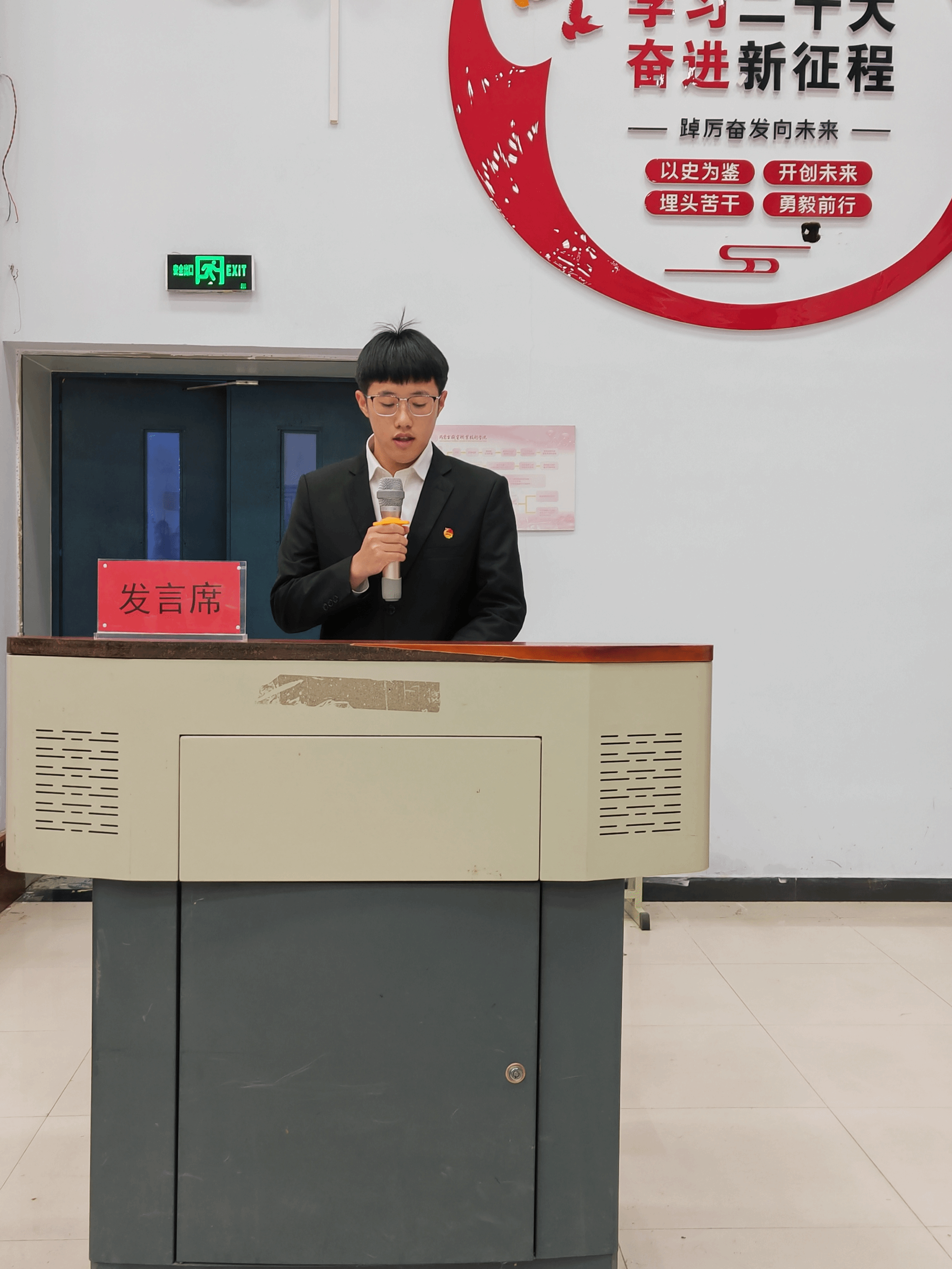 学生代表机电工程系机电2313班王玥淇作表态发言,号召全体入党积极分子认真学习,争取早日成为一名合格党员,并表示将在以后学习生活中,以党员的标准严格要求自己,在同学中起到先锋模范带头作用。