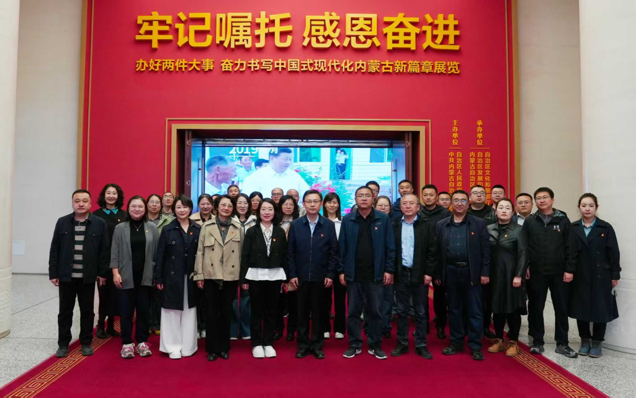 10月14日下午,学院党委理论学习中心组成员与全体副处级以上干部赴内蒙古展览馆,集体参观“牢记嘱托 感恩奋进”主题展,实地感悟北疆大地的奋进历程与发展成就。