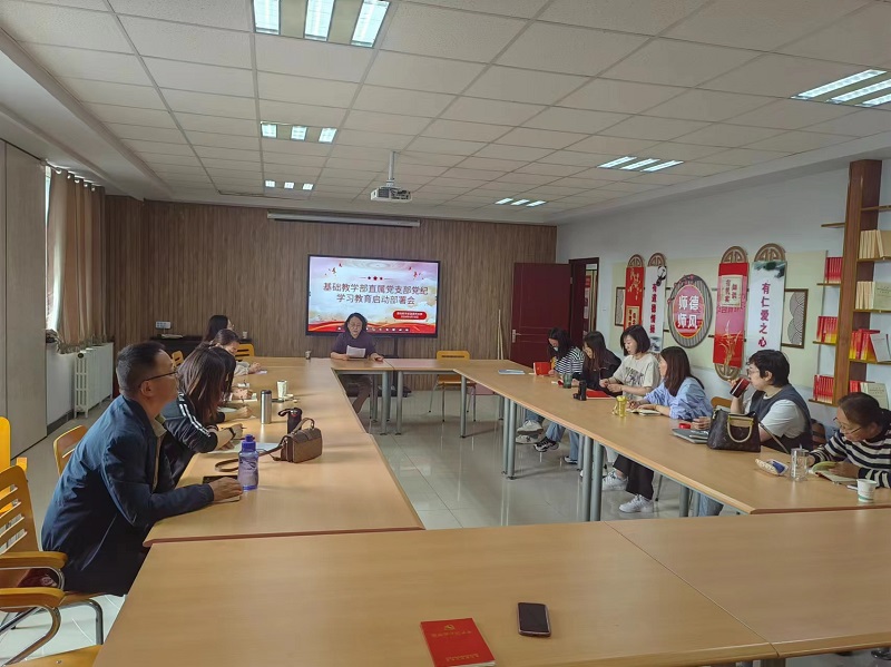 根据学院党委对党纪学习教育的部署和安排,4月18日下午,基础教学部直属党支部召开党支部全体党员大会,部署党支部党纪学习教育工作。会议由基础教学部党支部书记刘海霞主持,党支部全体党员参会。