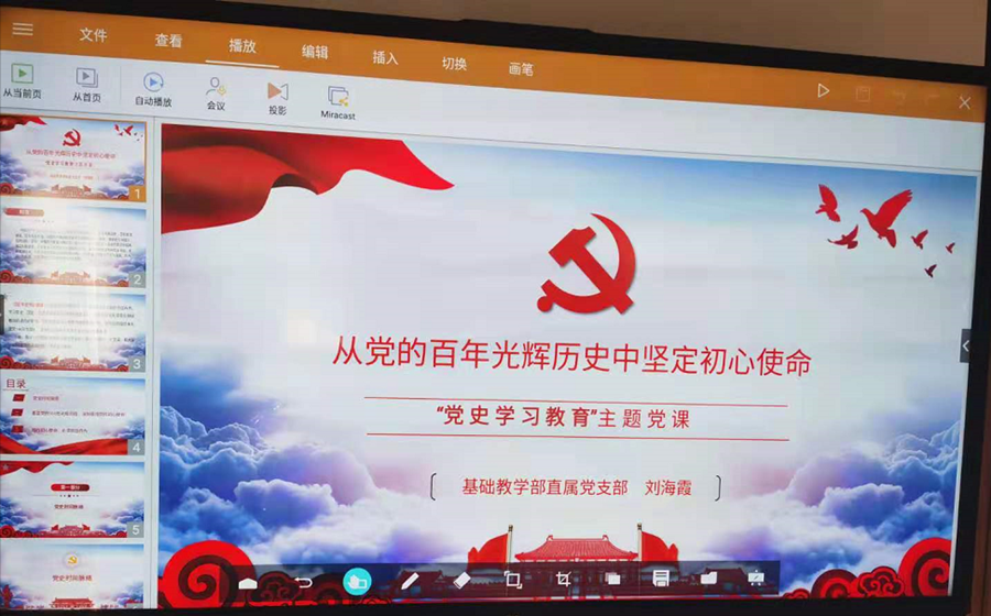 6月28日,基础教学部直属党支部组织全体党员听党课,支部书记刘海霞以“从党的百年光辉历史中坚定初心使命”为主题给支部全体党员上了一堂生动、深刻的党课。