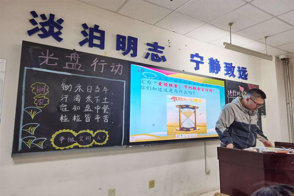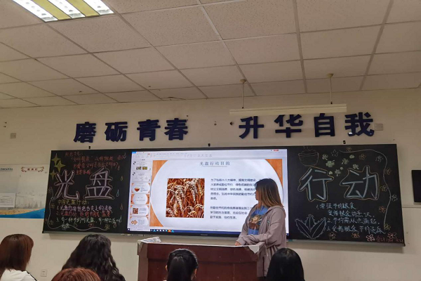 各班级以PPT、板报等形式开展班会,通过对“光盘行动”起源、必要性及其他相关知识的介绍,让每一位同学都充分认识到“光盘行动”的必要性和重要性。大家踊跃发言,表示勤俭节约、杜绝浪费不仅仅是中华民族的传统美德,更是对自己和劳动者的一种尊重,要争当“光盘行动”的践行者,养成节俭用餐好习惯。