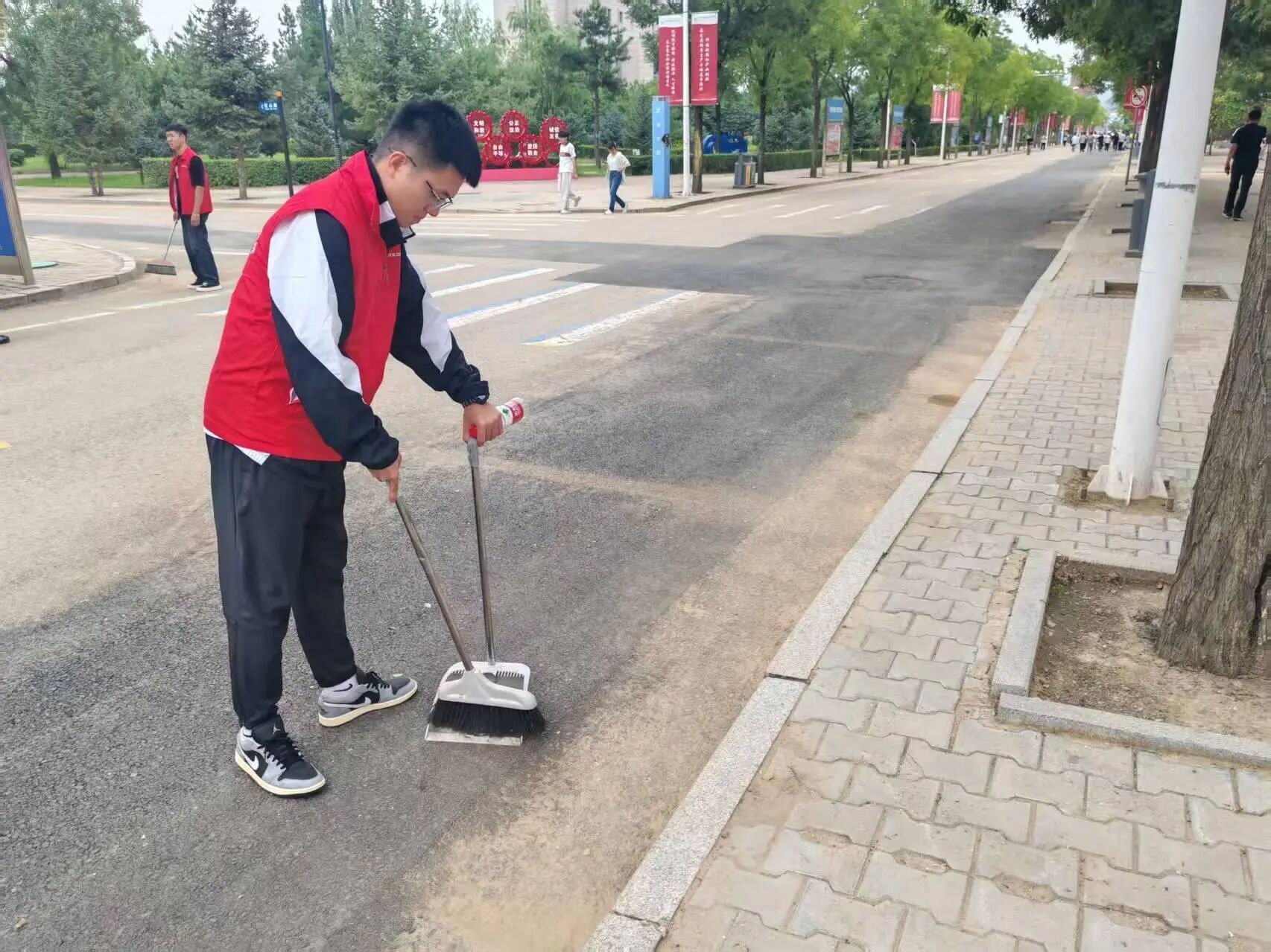 活动当日,志愿者们分工明确,迅速投入到各自的工作中。有的同学仔细清扫道路两旁的碎石和落叶,有的蹲在绿化带前,小心翼翼地将隐藏在草丛中的烟头一一捡起,还有的同学认真清理宣传栏上的尘土。