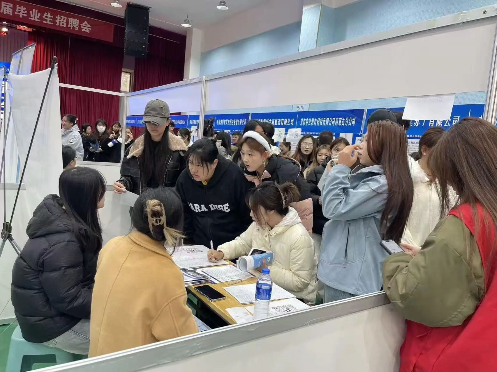 招聘会现场氛围热烈有序,各企业招聘负责人通过展板展示、现场宣讲、互动答疑等形式,详细介绍企业发展规划、岗位设置、薪资福利、晋升通道及人才培养体系,针对毕业生关心的专业适配度、技能要求、实习安排等问题逐一解答。系部毕业生手持精心准备的简历,主动与企业HR深入沟通,结合自身专业特长、实践经历和职业规划积极推介自己,展现出扎实的专业功底、清晰的职业认知和良好的精神风貌。部分企业现场开展初试环节,通过面对面交流进一步考察毕业生综合素养,最终与80余名毕业生达成初步就业意向。