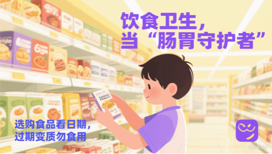 买食品看生产日期、保质期,不买“三无”产品。天热食物易坏,变质的千万别吃。野菜野果别乱尝,小心有毒。别暴饮暴食,生冷食物别吃太多,免得肠胃“抗议”。