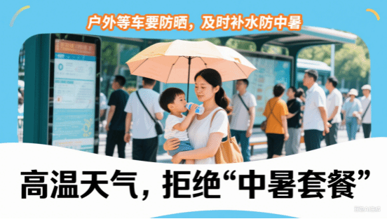 正午12点到下午3点尽量别出门。外出穿透气衣,戴帽戴镜,揣好防暑药。多喝水、少吃甜饮,饮食清淡。头晕心慌赶紧去阴凉处休息降温。