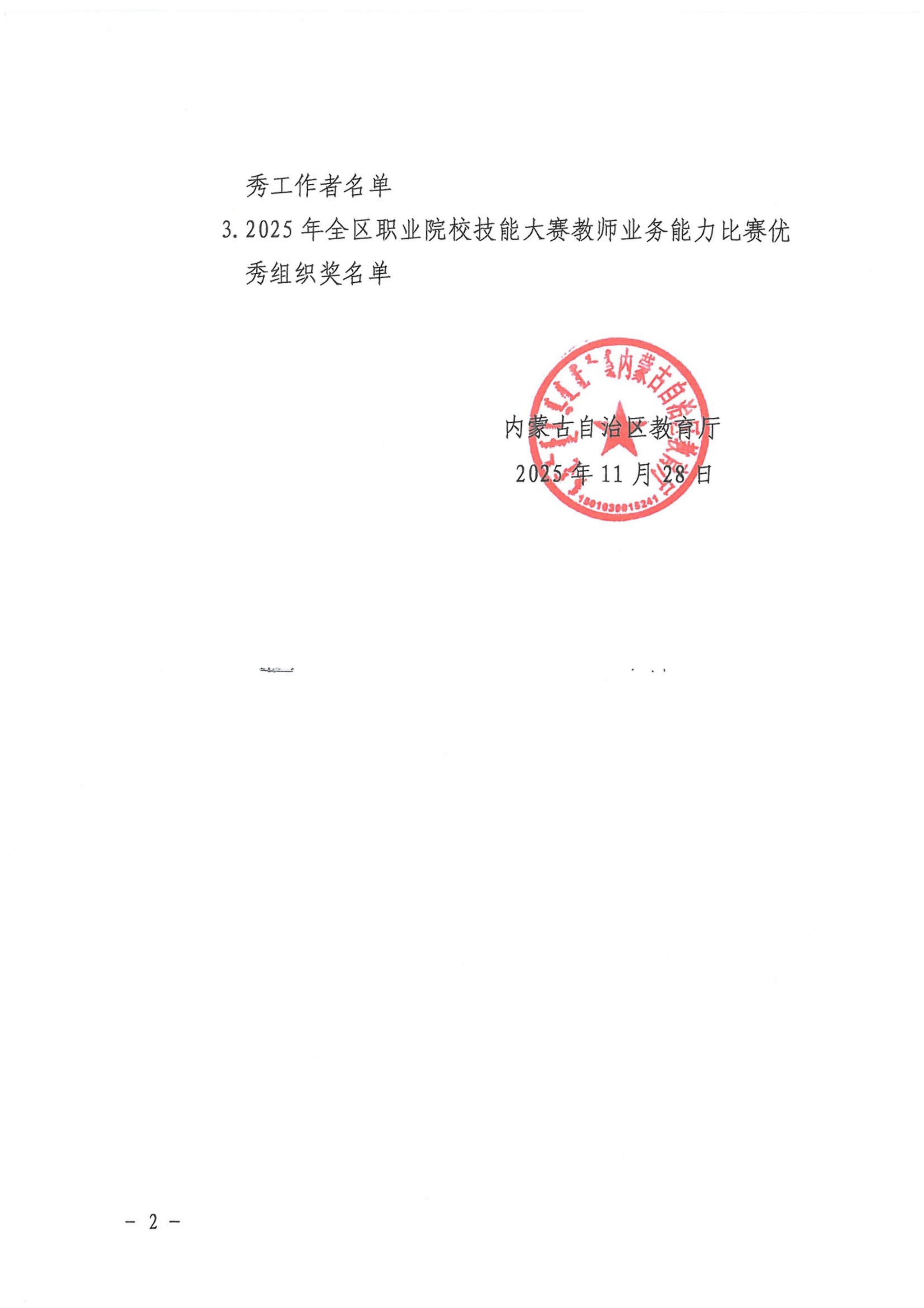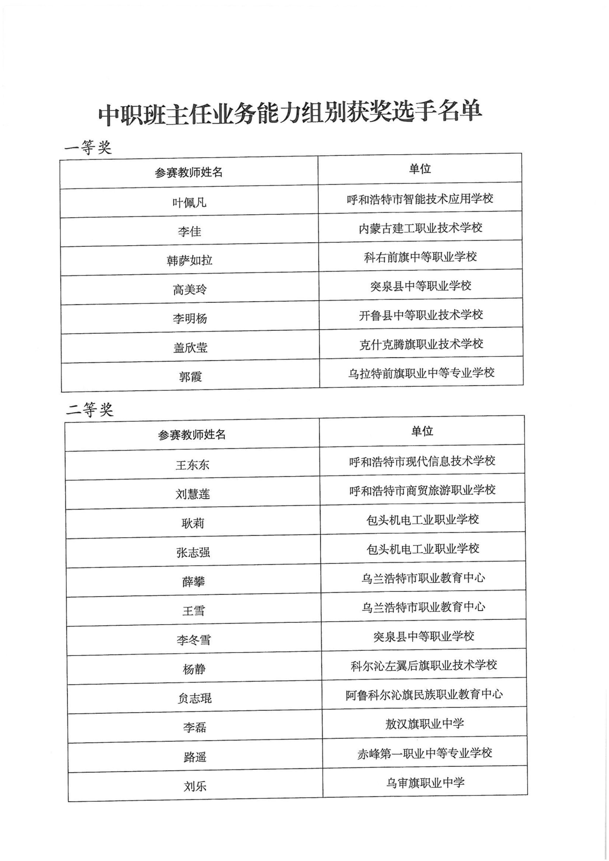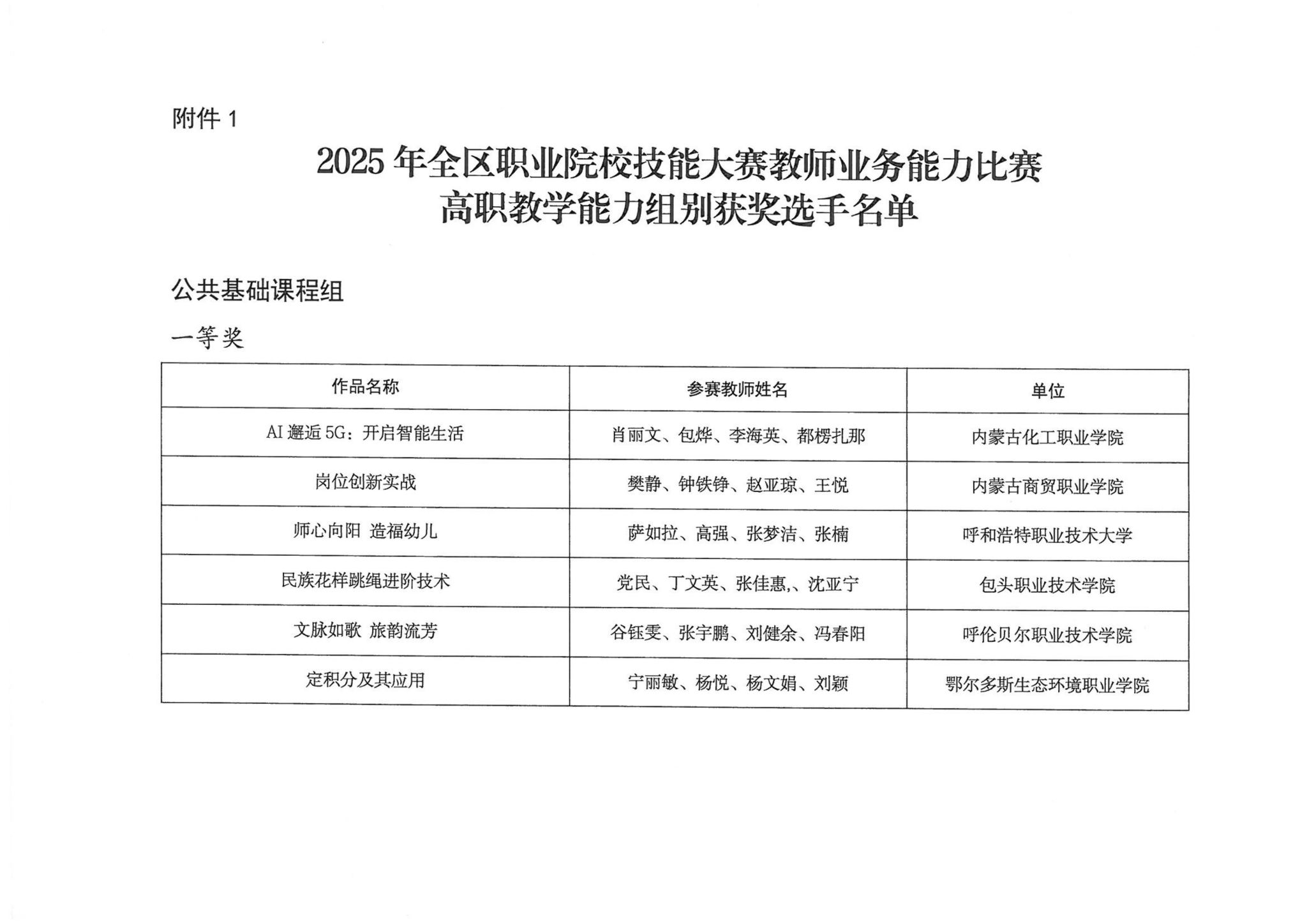关于公布2025年全区职业院校技能大赛教师业务能力比赛获奖名单的通知