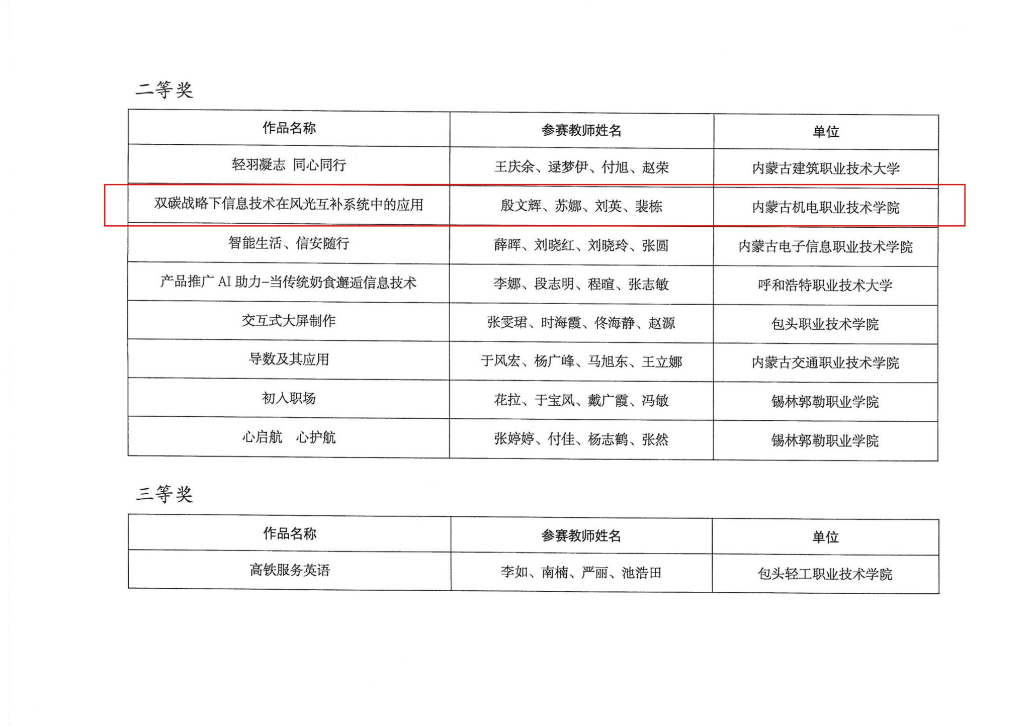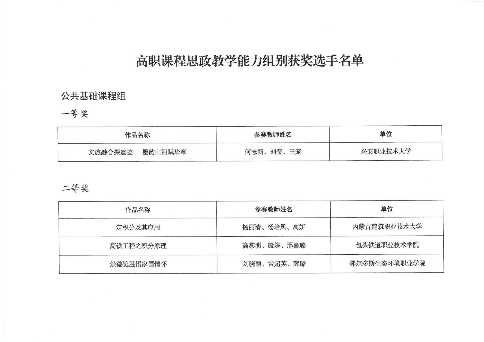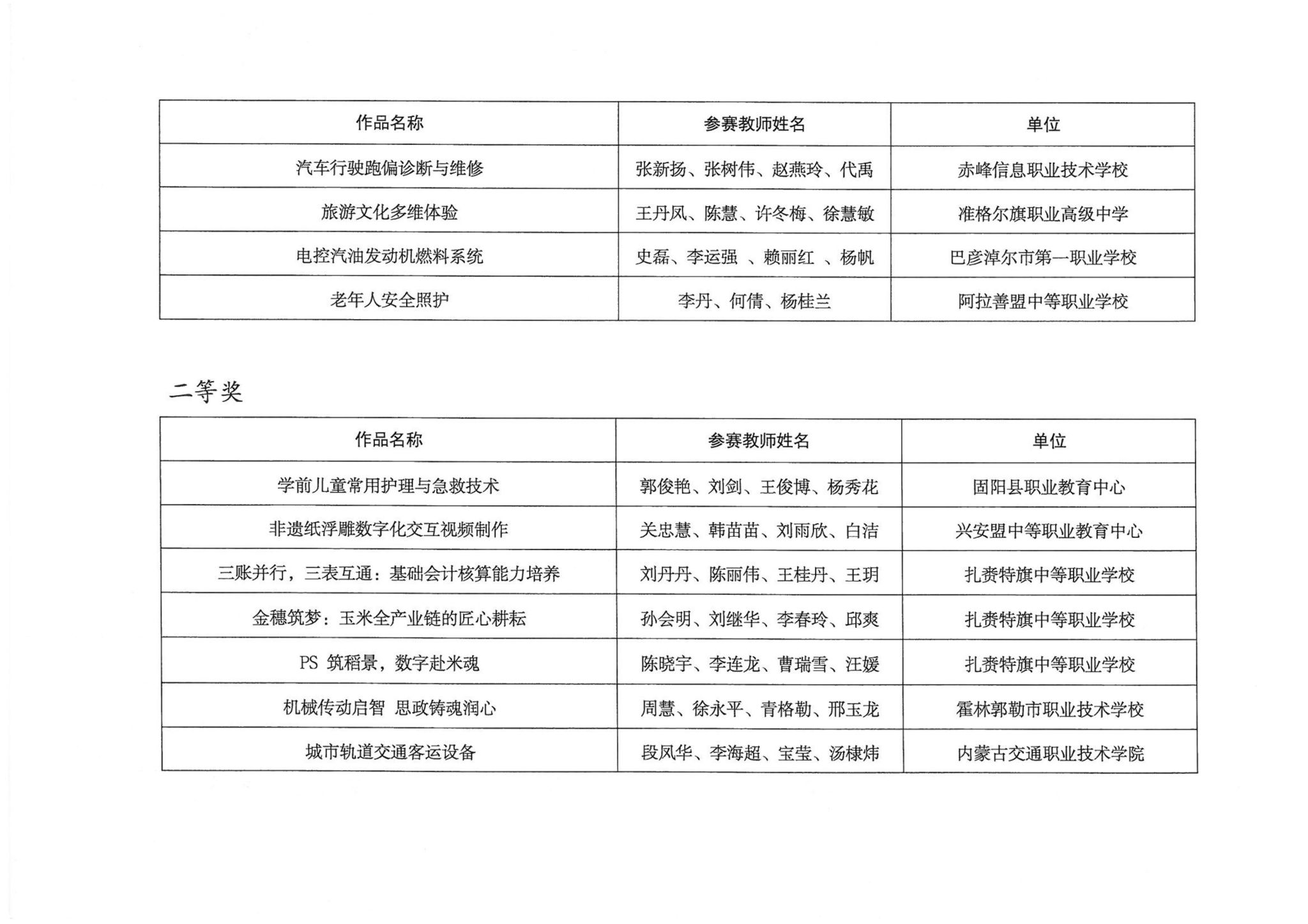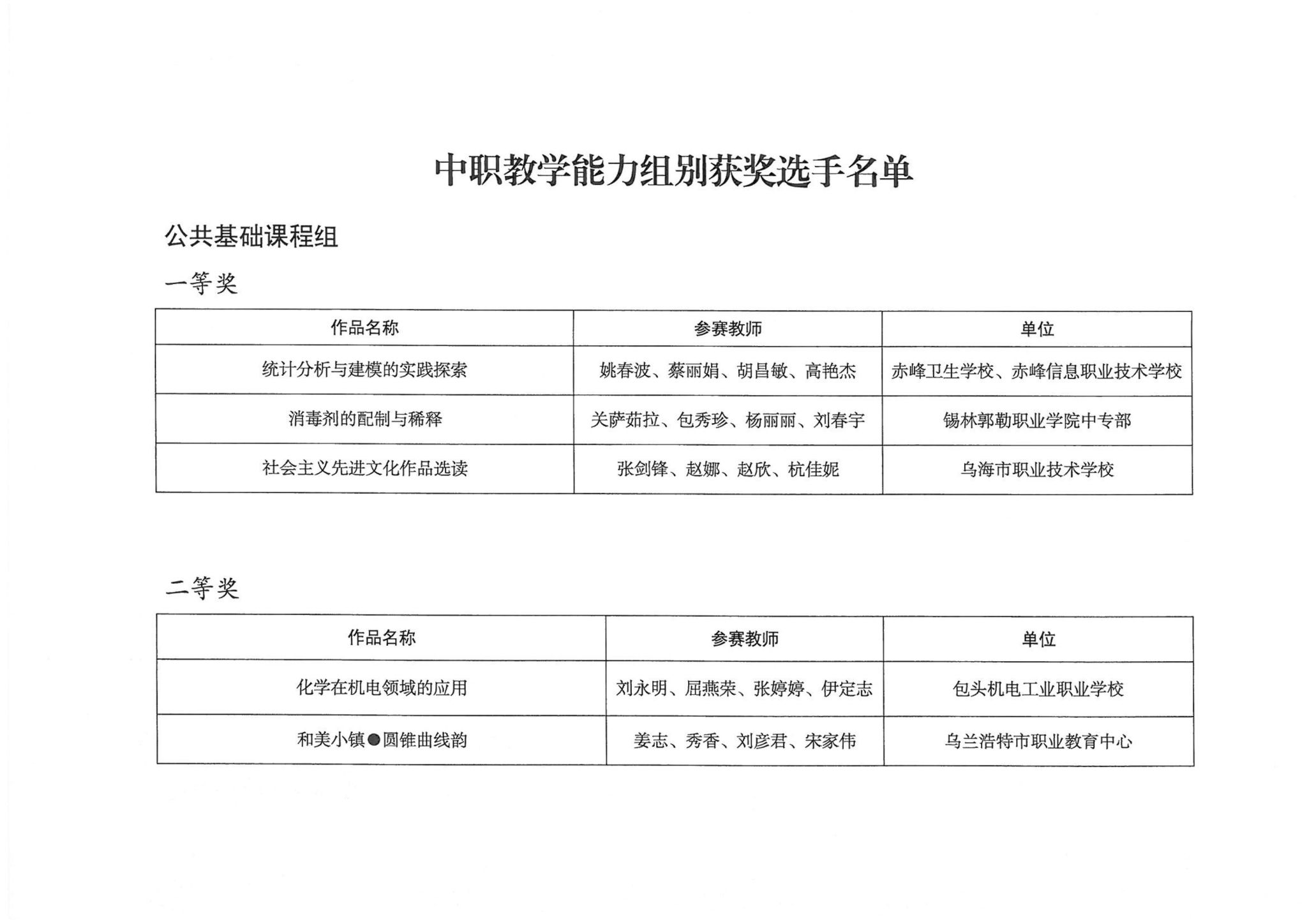 关于公布2025年全区职业院校技能大赛教师业务能力比赛获奖名单的通知
