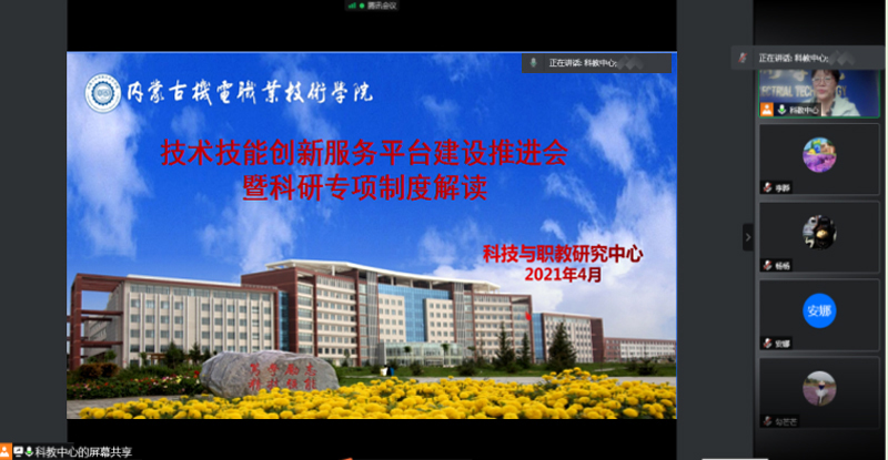 本次活动由科技与职教研究中心主办,电气工程系和能源与材料工程系协办,科技与职教研究中心主任陈金霞做制度解读,副主任乌日娜主持会议。活动以线上线下相结合同步进行,共150余名教师参加本次培训会。