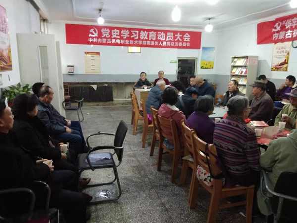 2021年3月18日上午9:30,离退休人员党总支在东区老干部活动室召开了总支党史学习教育动员会,认真学习了习近平总书记在党史学习教育动员大会上的重要讲话精神,认真学习传达了学院党委李书记在全院党史学习教育动员会上的讲话精神和《内蒙古机电职术学院党委党史学习教育实施方案》,并对本部门开展党史学习教育进行了动员。离退处党总支成员、各党支部书记、各党支部支委、部分退休党员代表、离退处全体工作人员参会。