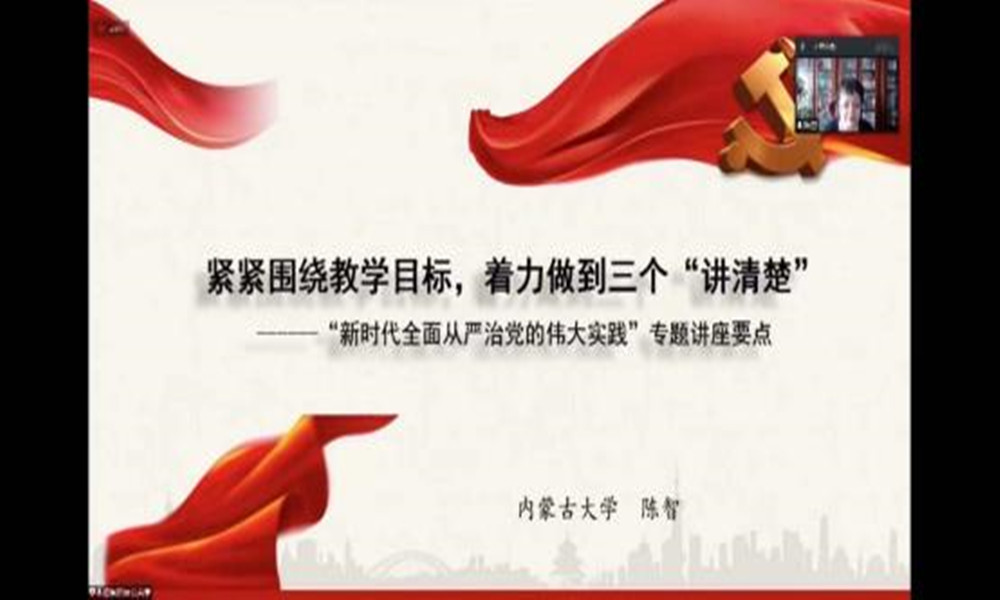 内蒙古自治区高校思想政治理论课教学指导委员会主任、内蒙古自治区文史研究馆副馆长、马克思主义理论专业博士生导师陈智教授对专题《新时代全面从严治党的伟大实践》进行了“紧紧围绕教学目标,着力做到‘三个讲清楚’”的教学指导。