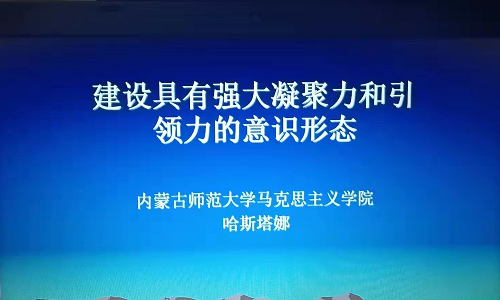2021年11月29日晚,马克思主义教研部邀请到内蒙古师范大学马克思主义学院教授,硕士生导师哈斯塔娜教授,作了主题为“建设具有强大凝聚力和引领力的意识形态”意识形态专题讲座。马克思主义教研部全体专兼职教师线上聆听。