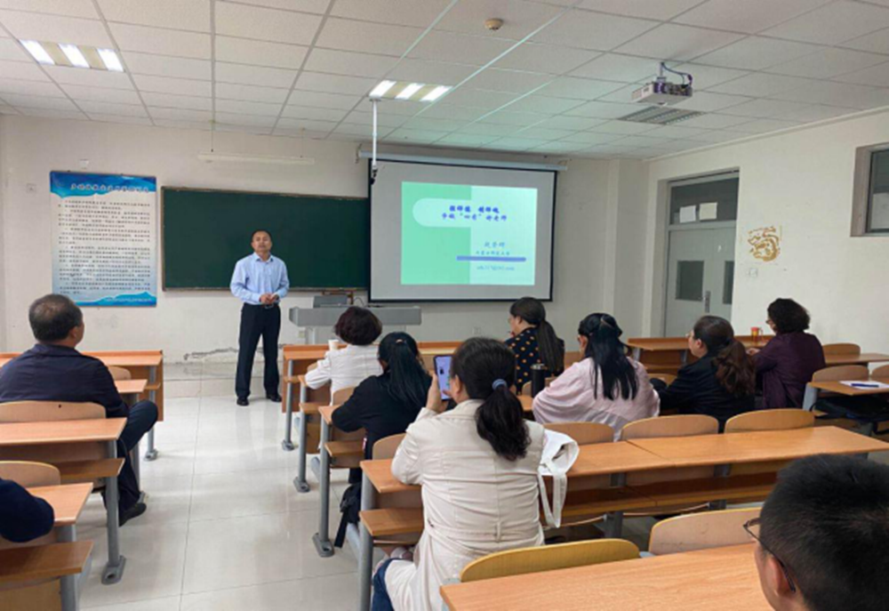 为贯彻落实学院《2020年师德师风建设活动实施方案》,进一步提升教师师德素养,激励广大教师努力成为“四有”好老师,更好担当起学生健康成长的指导者和引路人。按照学院教师发展中心双高建设任务的要求,9月28日下午,马克思主义教研部邀请内蒙古师范大学教育学院副院长、教授、硕士研究生导师赵荣辉作了题为《强师德 铸师魂:争做“四有”好老师》的专题讲座。讲座由马克思主义教研部副主任刘波主持,马克思主义教研部、基础部、信息工程系领导及全体教师共同聆听了讲座。
