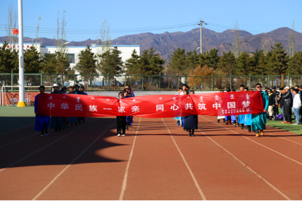 在开幕式上,身着特色服装的搏克队、射箭队、布鲁队和师生代表队依次入场。