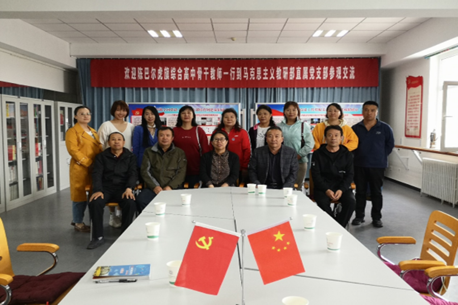 5月24日,陈巴尔虎旗综合高中骨干教师一行到马克思主义教研部直属党支部参观交流。支部委员会全体成员参加了交流研讨。支部书记郑云宏表示,中职高职在教学、科研、党建方面有很多共性的东西,我们要把“党建+”模式辐射到教学、科研的各个方面,为学院的发展服务,为支部的教学服务。陈巴尔虎旗综合高中骨干教师一行观看了我支部“全国党建工作样板支部”建设的成果汇报视频,参观了红色书屋,表示要将先进经验带回到陈巴尔虎旗综合高中,积极借鉴马克思主义教研部直属党支部的建设经验,完善党建阵地设置,将党建工作推进开来。(图/文 高峰)