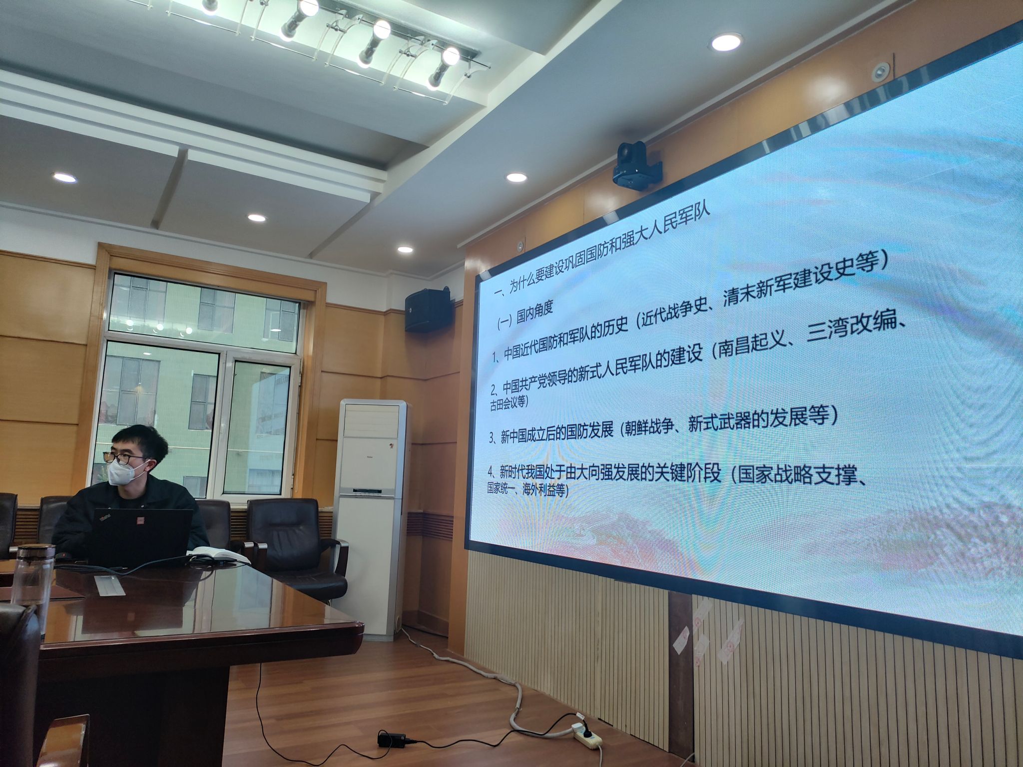 在集体备课与教学研讨环节,由内蒙古艺术学院马克思主义学院梁杰老师围绕第十四章《建设巩固国防和强大人民军队》,从“历史脉络——现实需求——西对比”三维角度展开讲解:回顾近代中国“有国无防”的屈辱历史,对比新时代强军兴军历程,分析中西方国防建设模式差异,逻辑清晰、解读透彻,让在场教师深受启发。