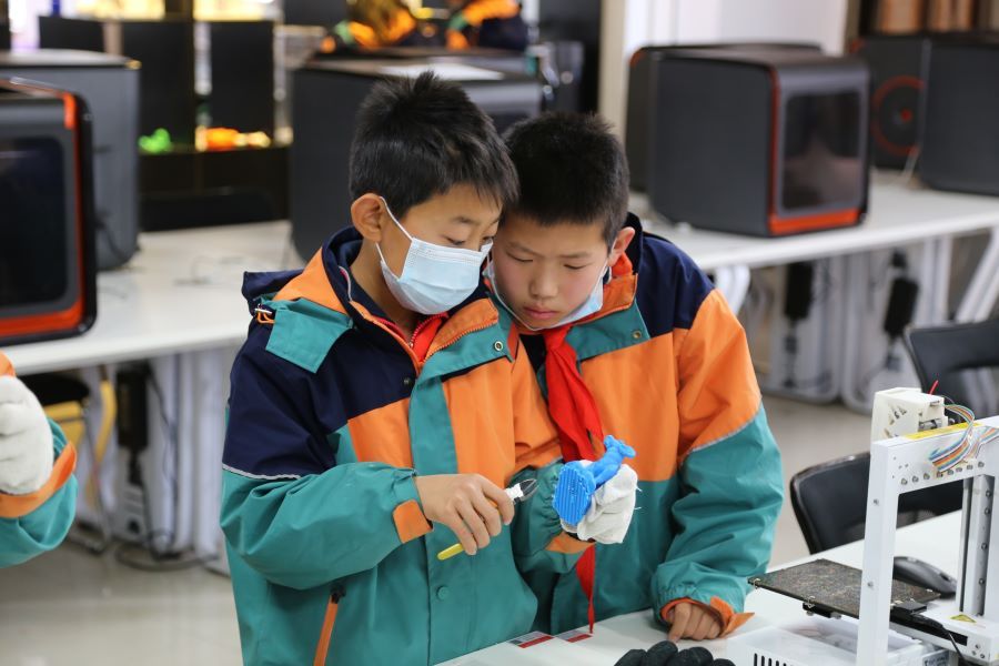 小学生们在活动过程中,了解3D打印技术及光伏发电技术的原理,参观3D打印及光伏发电作品,观察3D打印机的结构及工作过程,尝试用3D打印笔进行产品设计、动手体验光伏发电组件的制作及3D打印件支撑拆除。孩子们的眼神中显露出好奇、惊喜,脸庞上充满着喜悦和激动。