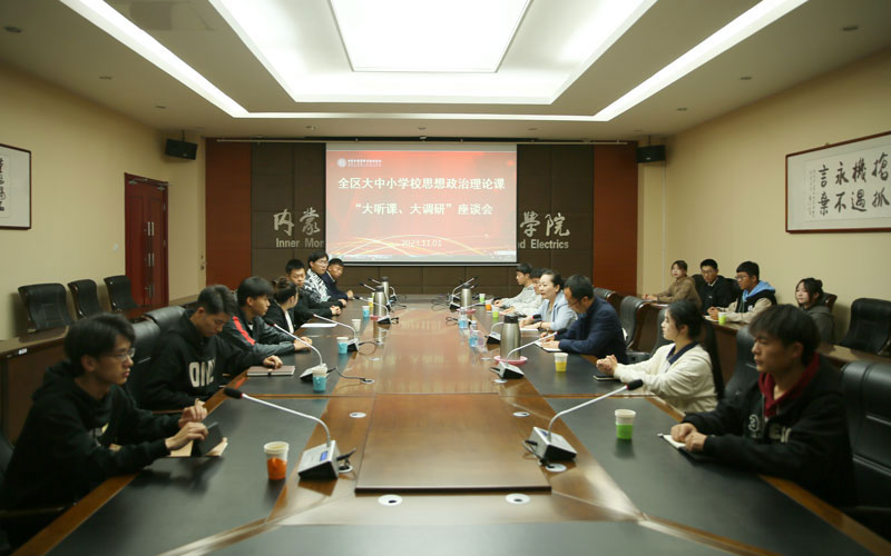 随后,召开了调研座谈会。学院党委书记呼和,党委副书记高军,党委委员、组织(统战)部部长项海涛出席,党委宣传部、人事处、财务处、教务处、科技与职教研究中心、马克思主义学院等相关职能部门负责人、思政课教师代表、学生代表等参加座谈。