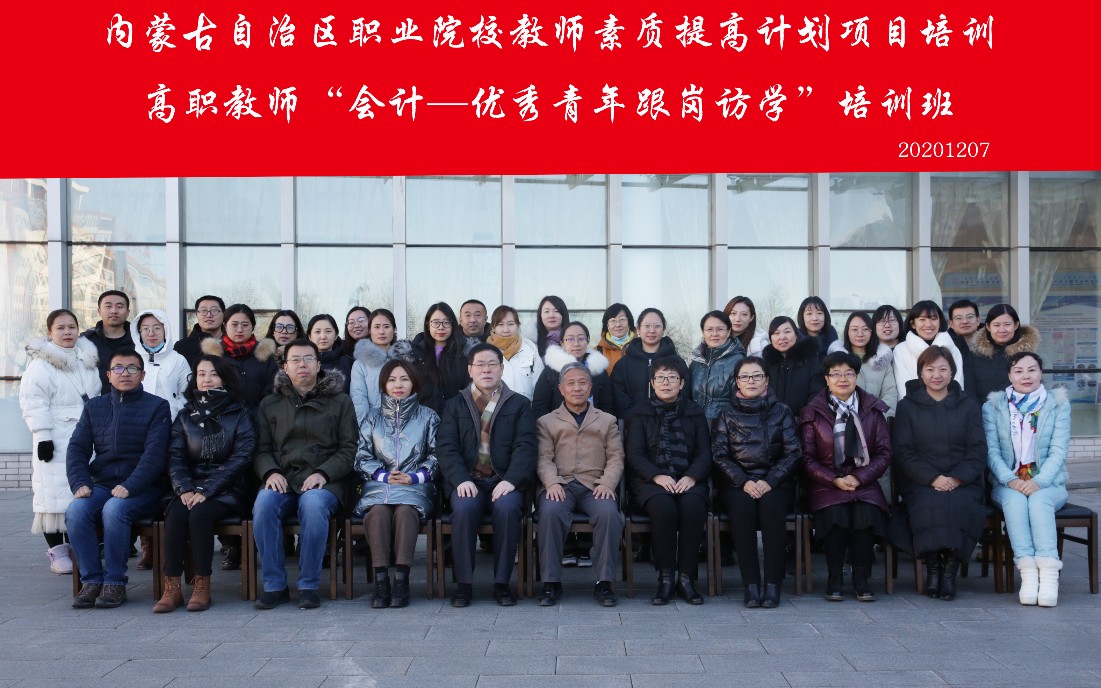 12月4日,内蒙古自治区职业院校教师素质提高计划项目培训高职教师“会计---优秀青年跟岗访学”开班仪式在我院学术交流中心举行。自治区教育厅2019年职业院校教师素质提高计划项目办负责人杨根喜、学院副院长郝俊、职业培训与中职教育部主任刘敏丽、财务处处长旭日、经济管理与工程系党总支书记兼主任冀玉玲、后勤管理服务处处长李冠文、安全工作处处长谢虎成及培训项目全体工作人员、全体学员参加了开班仪式。本次开班仪式由刘敏丽主持。