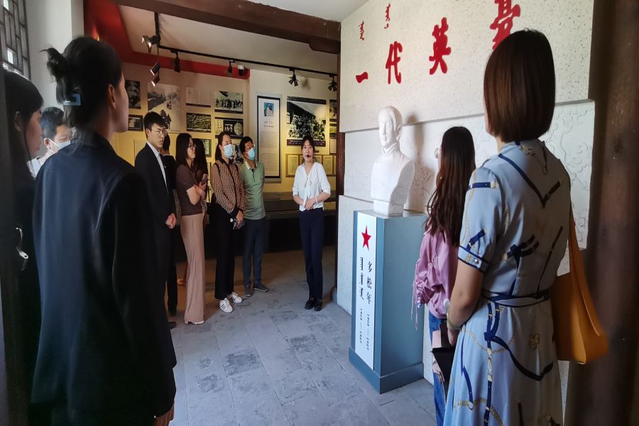 学生党员张晨钰和范春波为大家讲述”内蒙古自治区党史故事“、和”多松年烈士的故事“。从他们的讲述中了解到第一批蒙古族共产党员诞生的背景、历程和重大意义,教育新时代广大党员干部始终铭记共产党人的初心和使命。伴随着庄严的国歌,活动进入下一个主题,参观”多松年烈士纪念馆“。党员们在工作人员的讲解下认真参观了陈列室里再现多松年烈士光辉一生的珍贵历史图片、文字纪实和真实的先烈遗物。参观后,大家都被多松年这位伟大革命烈士的浩然正气和铮铮铁骨所感动,多松年烈士坚守共产主义信念、英勇顽强、不怕牺牲的革命精神深深地感动着每一位党员。