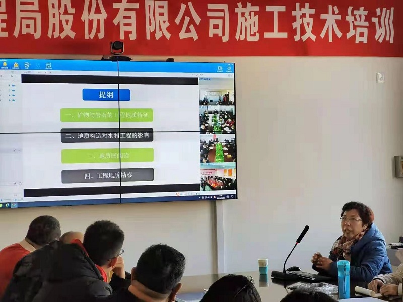 2020年12月24日—25日,选派教师段树萍、司效英赴内蒙古黄河工程局股份有限公司,利用线上线下同时教学的方式,开展题为“工程地质问题及工程地质勘察”、“水利施工技术部”的继续教育培训,帮助公司员工对接水利工程前沿技术,了解先进水利施工技术、工艺流程,解决软土地基处理、工程地质勘察及隧洞衬砌施工等常遇到的实际问题。