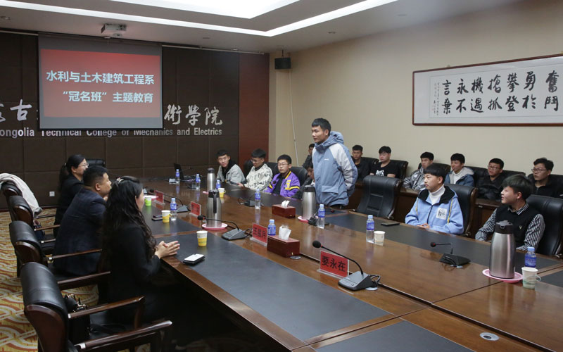 2020年10月24日下午3时,水利与土木建筑工程系“冠名班”主题教育在会议中心1号会议室成功举办,内蒙古浩禹建筑有限责任公司董事长郭欢、内蒙古浩禹建筑有限责任公司项目管理部总经理王星月、水利工程专业群教研室主任于海云以及2020级水利水电建筑工程专业学生代表参加了本次主题教育。