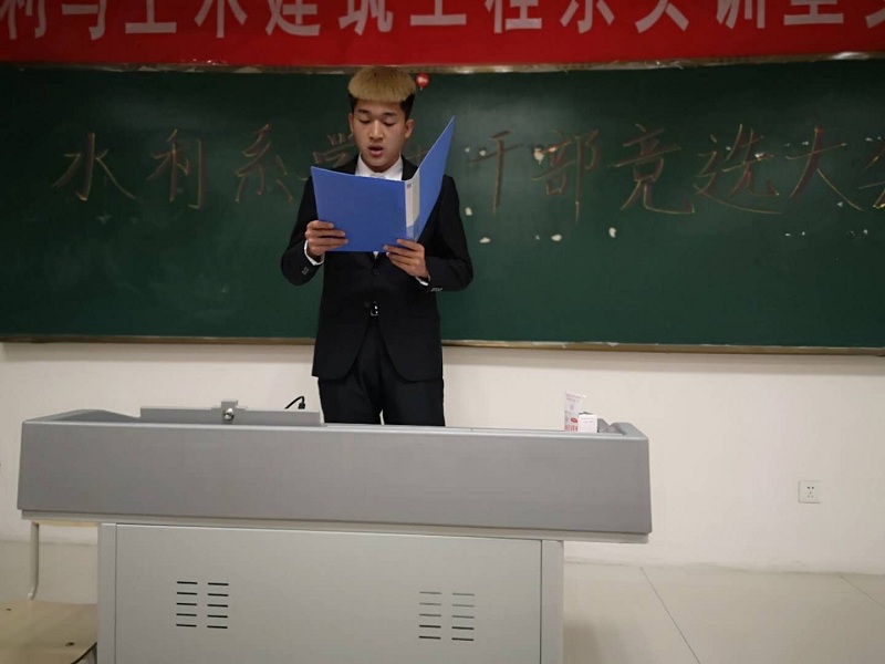自信源于承担,成功始于责任。为了让他们在这里展示自己的才华,展示自己的领导能力和管理能力。水利与土木建筑工程系于2020年11月9日晚上19:00开展了“水利系学生干部竞选大会”主题活动。出席本次活动的有水利与土木建筑工程系副书记张雄,学生科副科长王静平,学生干部竞选人员,以及大一大二各班负责人。