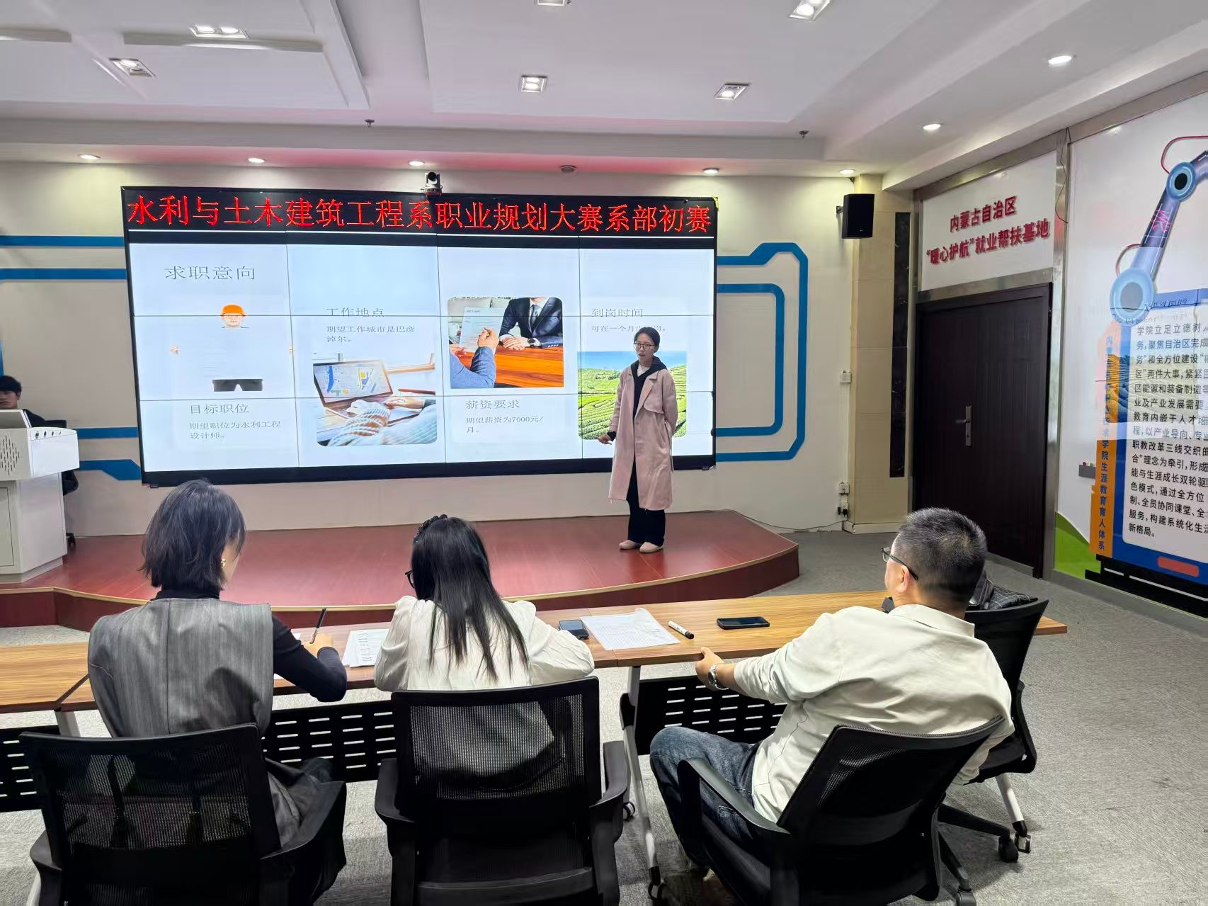 为引导学生树立科学职业观,提前规划学业与职业路径,提升简历撰写、面试表达等就业能力,助力学生精准对接岗位需求,水利与土木建筑工程系于10月16日在图书馆二楼就业发展工作站举办学院第三届大学生职业规划大赛系部初赛。