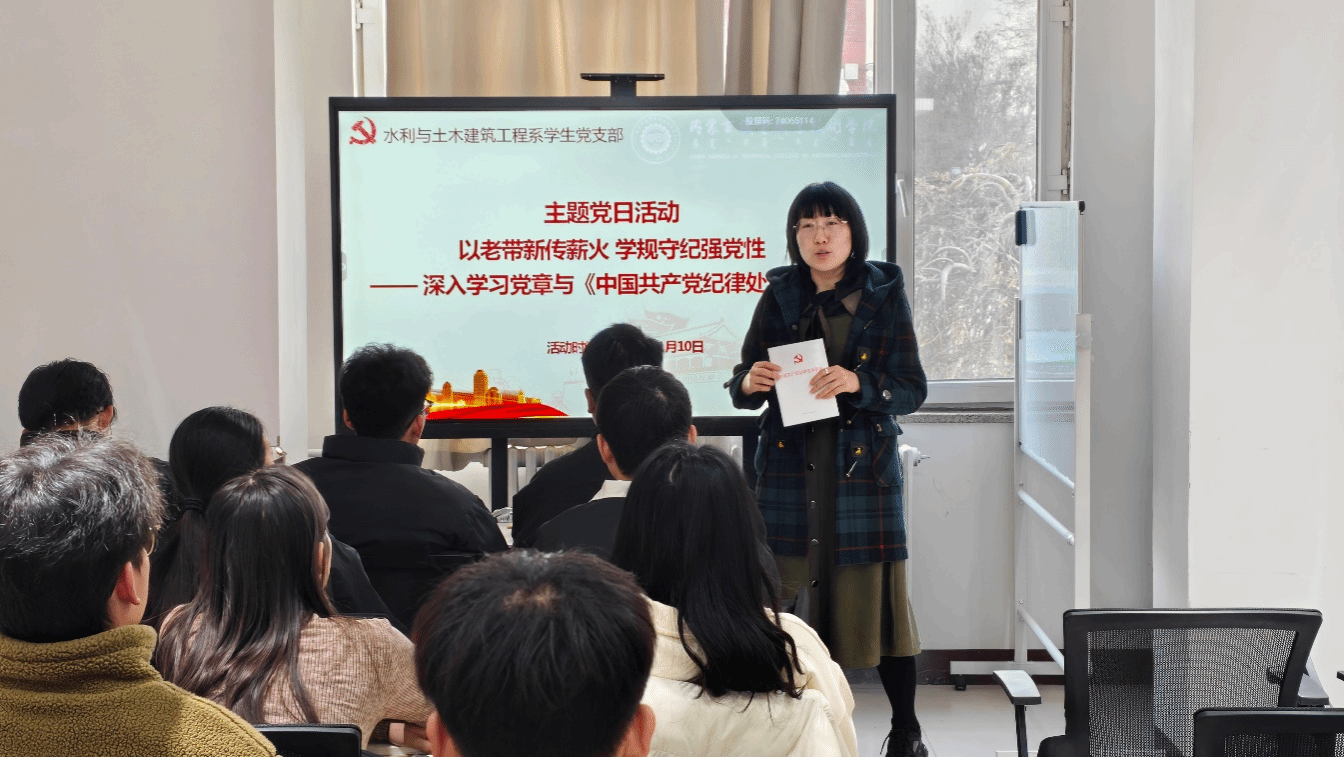 水利与土木建筑工程系学生党支部于2025年11月10日在彩虹“一站式”学生社区精心组织开展了以“深入学习党章与《中国共产党纪律处分条例》”为主题的党日活动。本次活动创新采用“以老带新、新老互促”的模式,旨在传承党的优良传统,强化全体党员的党章党规党纪意识,切实提升党性修养。