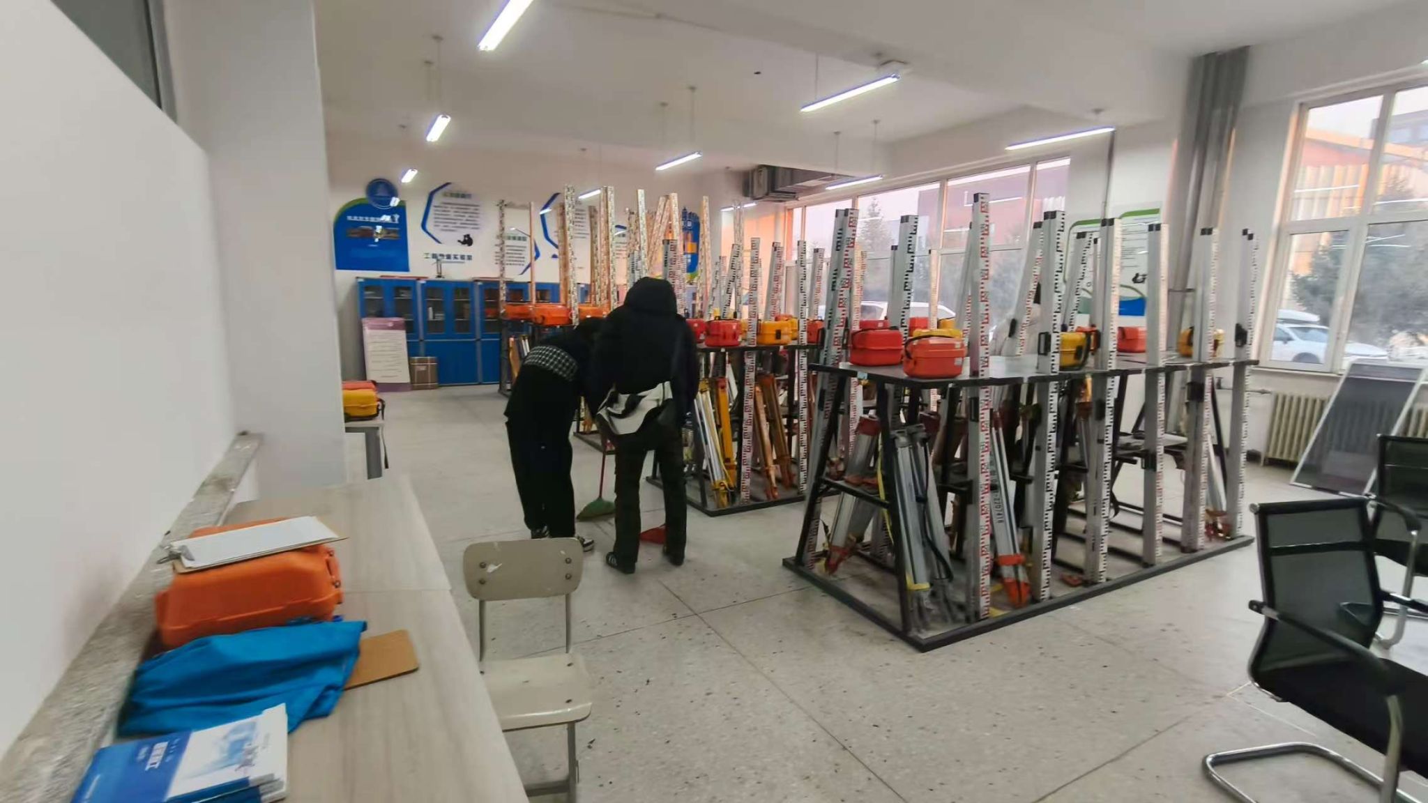 在工程测量实验室里,学生们精心擦拭水准仪、全站仪等精密设备的镜头与机身,按照编号将设备归位。在呵护“工程之眼”的过程中,加深了对“精度”与“责任”的认知。