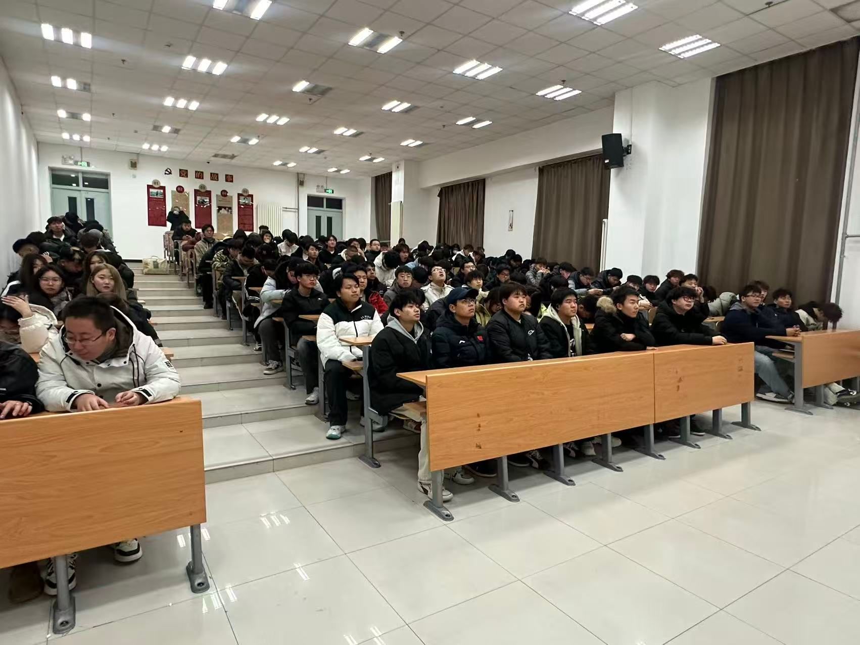 王老师结合当下大学生普遍存在的 “迷茫”“焦虑” 等问题,分享了多位优秀青年的奋斗故事。其中,“脑瘫学子凭借毅力考上研究生”“贫困女生通过勤工俭学完成学业并创业帮扶他人” 等案例,让同学们深受震撼。王老师强调,“人生没有标准答案,真正的励志不是追求‘完美’,而是在面对困难时不放弃、在明确目标后敢拼搏。大学生要学会找准自身定位,制定清晰的规划,用行动代替抱怨,用坚持成就梦想。” 同时,他还为同学们提供了实用的 “励志成长小贴士”,包括如何合理分配时间、如何调整心态应对挫折等,赢得了现场阵阵掌声。
